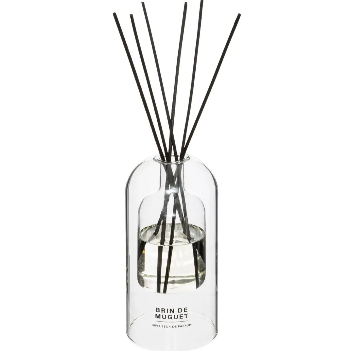 On craque pour les lignes épurées et le jeu de transparence de ce diffuseur de parfum. Le flacon en verre d’une contenance de 150 ml est assorti de 6 bâtonnets pour une durée de diffusion de 12 semaines. Son parfum Brin de muguet inspire une escapade verte et florale un beau matin de printemps.