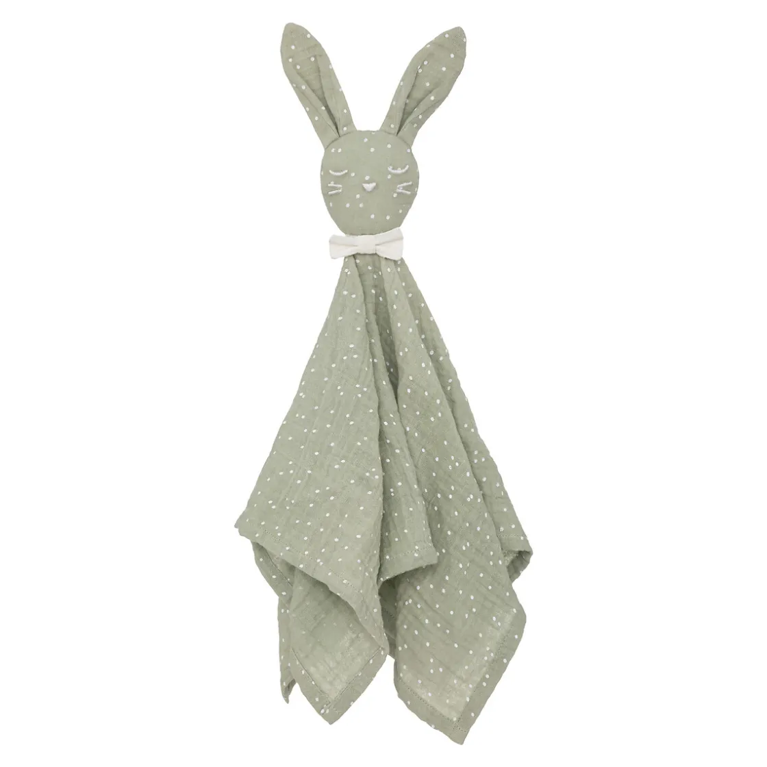 Très mignon, ce doudou en coton a la forme d’un lapin avec un carré de tissu intégré. Votre tout-petit adorera saisir ses grandes oreilles rassurantes. Le joli noeud papillon apporte la touche finale à ce jouet plein de tendresse.