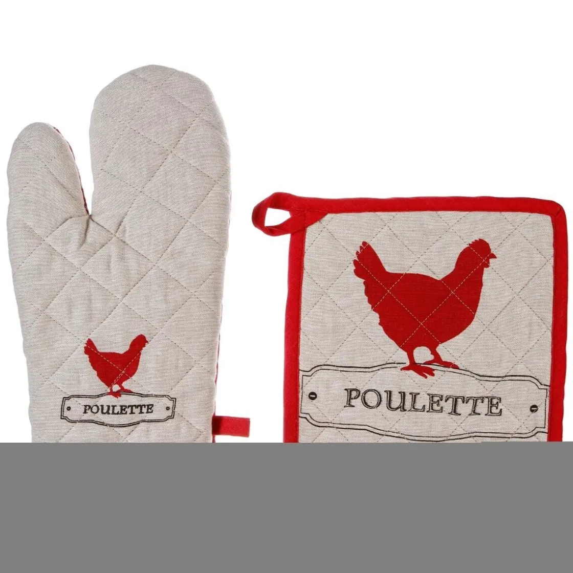 Coordonnez votre gant et manique « poule » à un set de torchons Atmospheraissus de la même collection afin d’harmoniser votre déco avec une touche intemporelle.