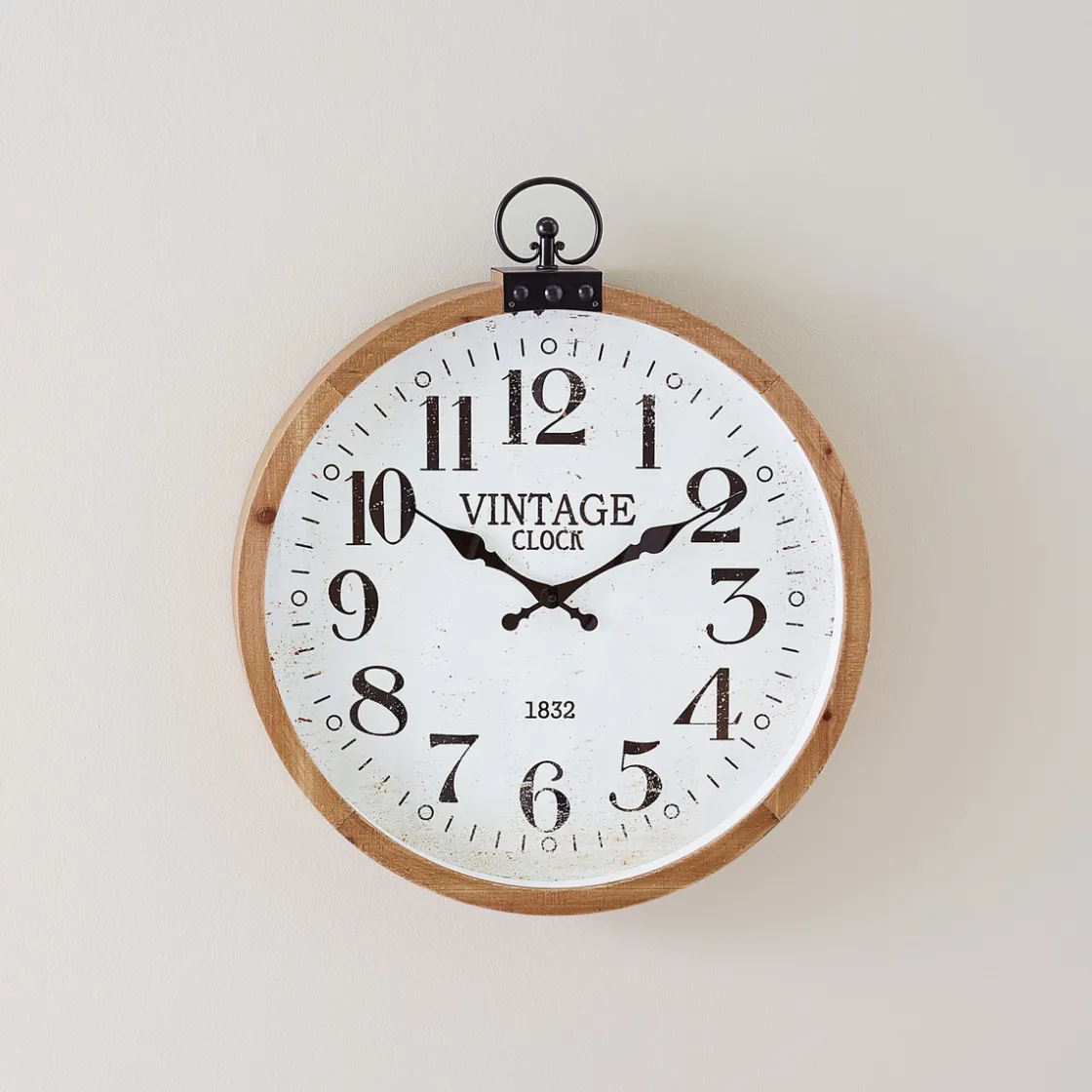 Vous pourrez facilement coordonner cette horloge à du mobilier en bois et des accessoires au look néo industriel, dans une entrée comme dans un bureau.