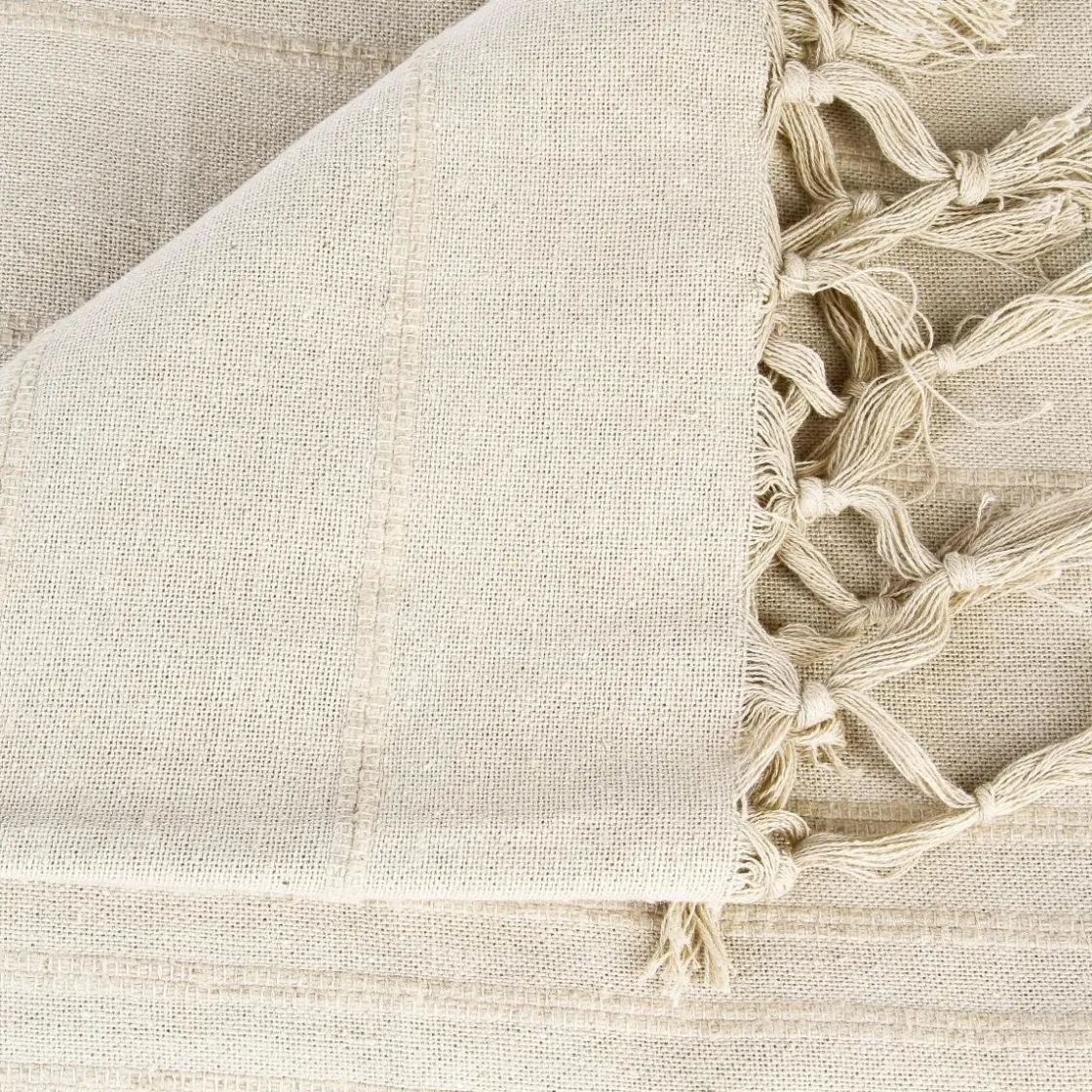 Ce jeté de lit aux dimensions généreuses avec un motif à rayures texturées. Les bords avec franges renforce son style très cosy.
