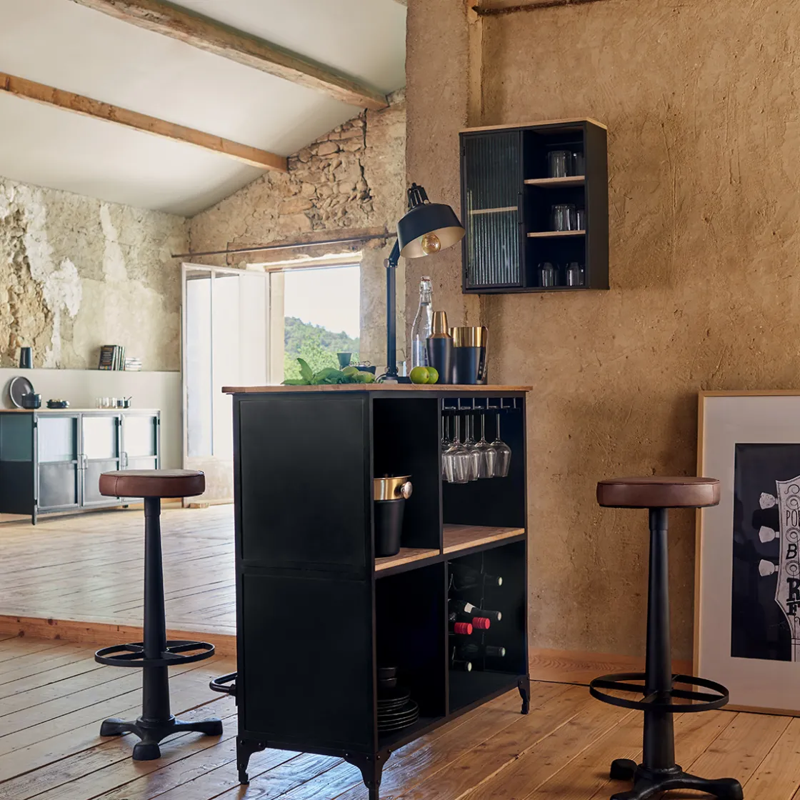 Créez une ambiance vintage dans votre bureau avec une bibliothèque en métal, un fauteuil en cuir et quelques objets chinés.