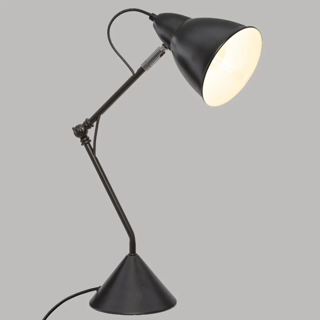 La lampe « Aude » Atmosphera reprend les codes des lampes de bureau rétro, mais ses lignes ont été étudiées pour lui donner un aspect chic et moderne. Elle s’inscrira aussi bien dans un intérieur contemporain que dans un espace de style industriel.