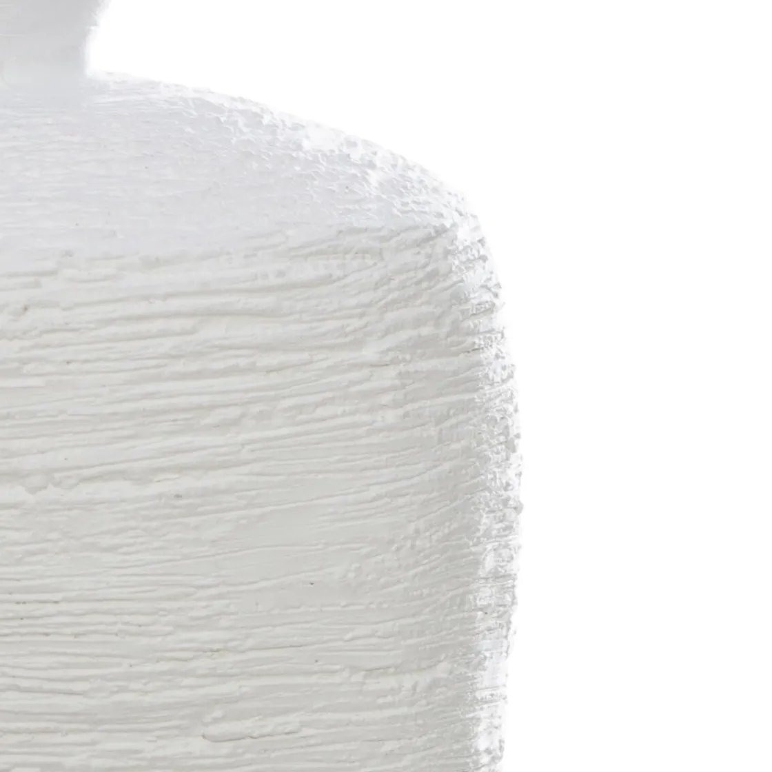 Cette lampe aux lignes arrondies diffuse une lumière tamisée avec son abat-jour conique. La surface texturisée de sa base en grès offre du relief dont l’aspect évoque celui d’une poterie artisanale.