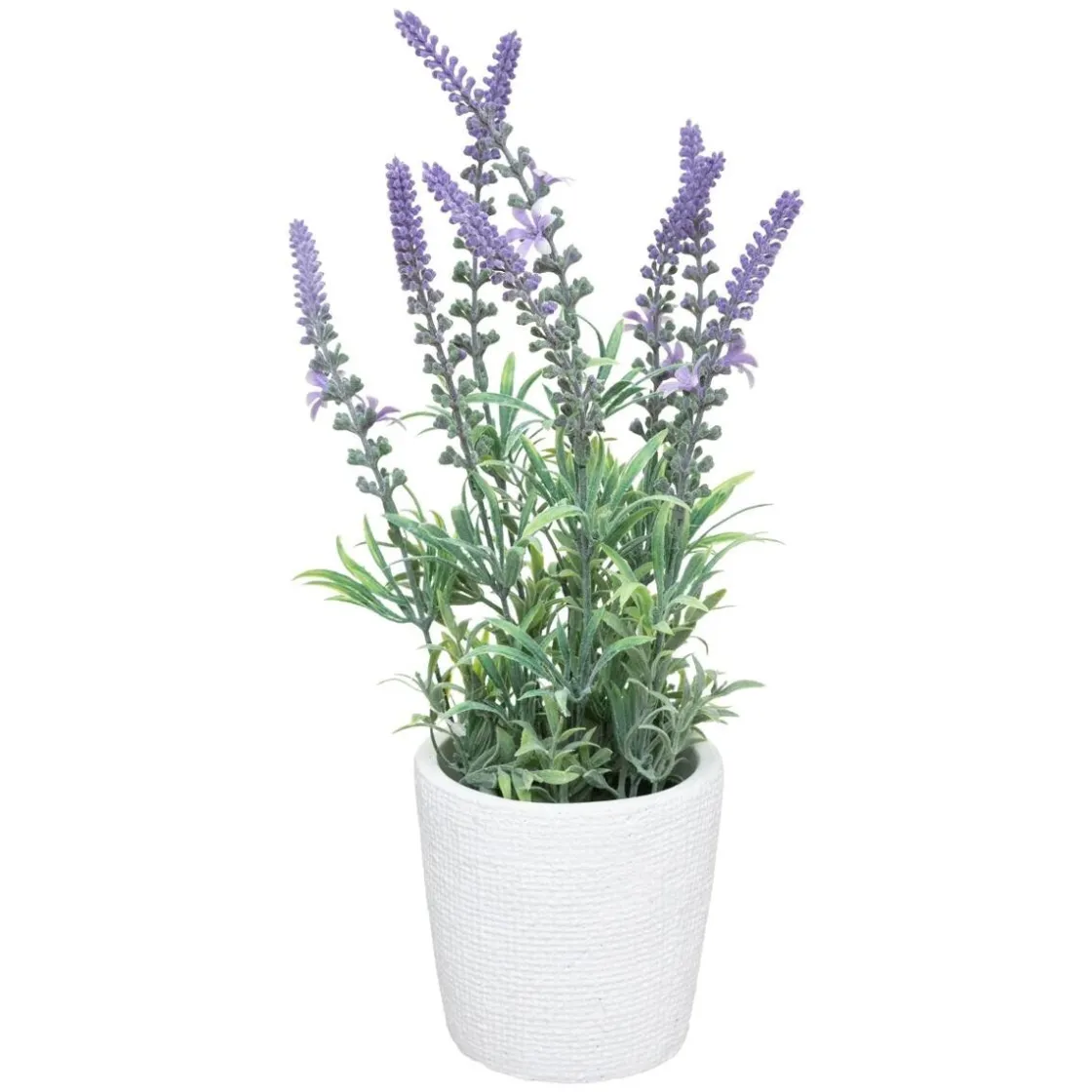 Cette lavande artificielle de 36 cm de haut trouvera facilement sa place sur un meuble ou une étagère. Plantée dans un pot en ciment texturé, elle joue sur un style authentique et se mariera parfaitement avec un univers poétique et délicat. Laissez entrer un air méditerranéen dans votre intérieur !