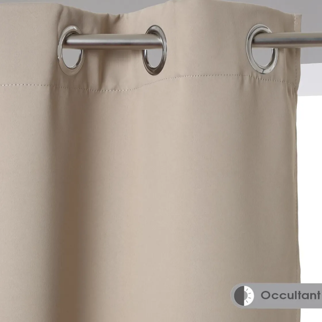 Cette paire de rideaux opaques ne laissera pas la lumière passer dans votre pièce. Sobres et raffinés, ils s’intègreront joliment dans une décoration chic. Les oeillets permettent de les ouvrir et de les fermer facilement sur une tringle. Faits en polyester épais, les lot de 2 rideaux occultants résisteront aux lavages en machine.