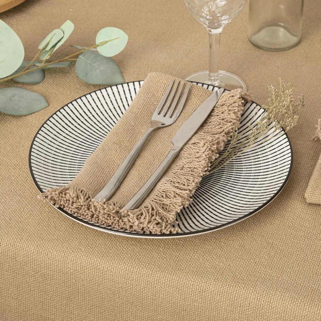 Ces serviettes de coloris neutre sont aussi pratiques que décoratives. Elles possèdent des franges sur tout le contour qui leur donnent toute leur originalité. De plus, le tissu en coton résistera à de nombreux lavages en machine pour vous accompagner durablement.