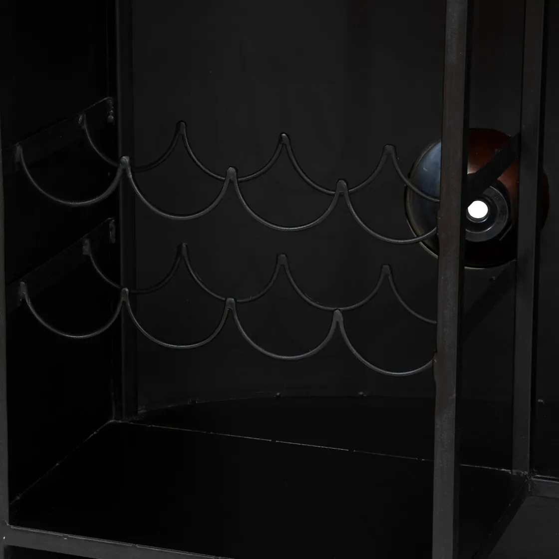 Le meuble bar « Gaston » dispose à l’arrière d’une étagère, de huit range-bouteilles et de trois racks pour verres de vin. Il possède également un repose-pied. Par ailleurs, le plateau supérieur en bois de manguier vous permettra de présenter joliment vos cocktails.