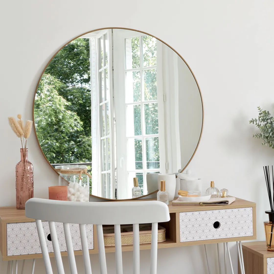 Grâce à ce miroir, vous pourrez créer un coin coiffeuse dans votre chambre. Pour cela, installez le miroir au-dessus d’une console, par exemple.