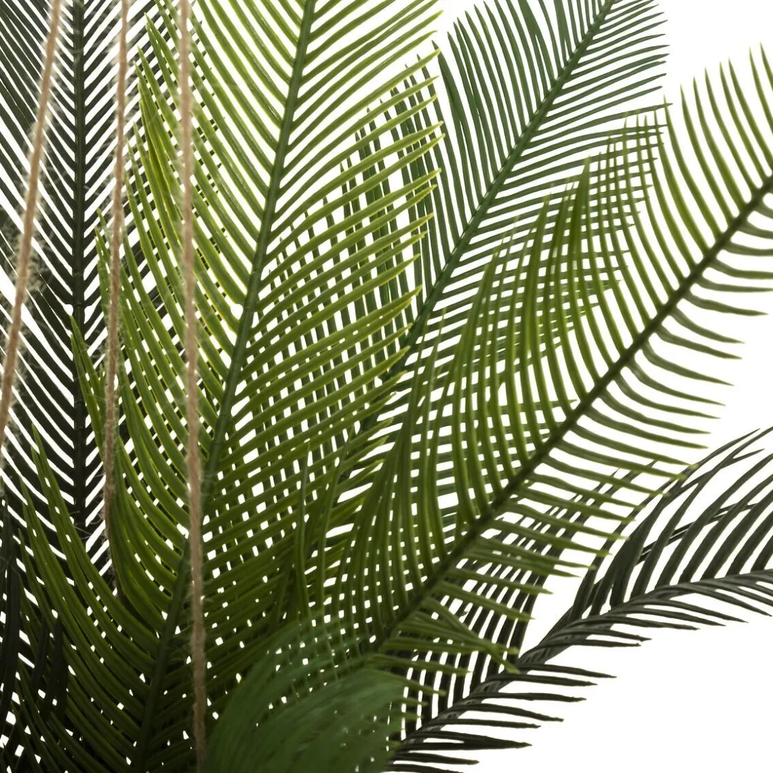 Haut de 50 cm, ce palmier artificiel « Cuba » se distingue par son contenant en noix de coco et l’aspect hyper réaliste de la plante. Solidement ficelé grâce à une corde naturelle, le pot se suspend et offre un style à la fois brut et intemporel.