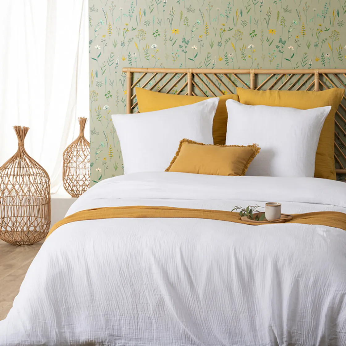 Unie, cette parure de lit en gaze de coton est à la fois tendance et élégante. Composée de deux taies d’oreiller et d’une housse de couette, elle est facile à vivre et lavable en machine.