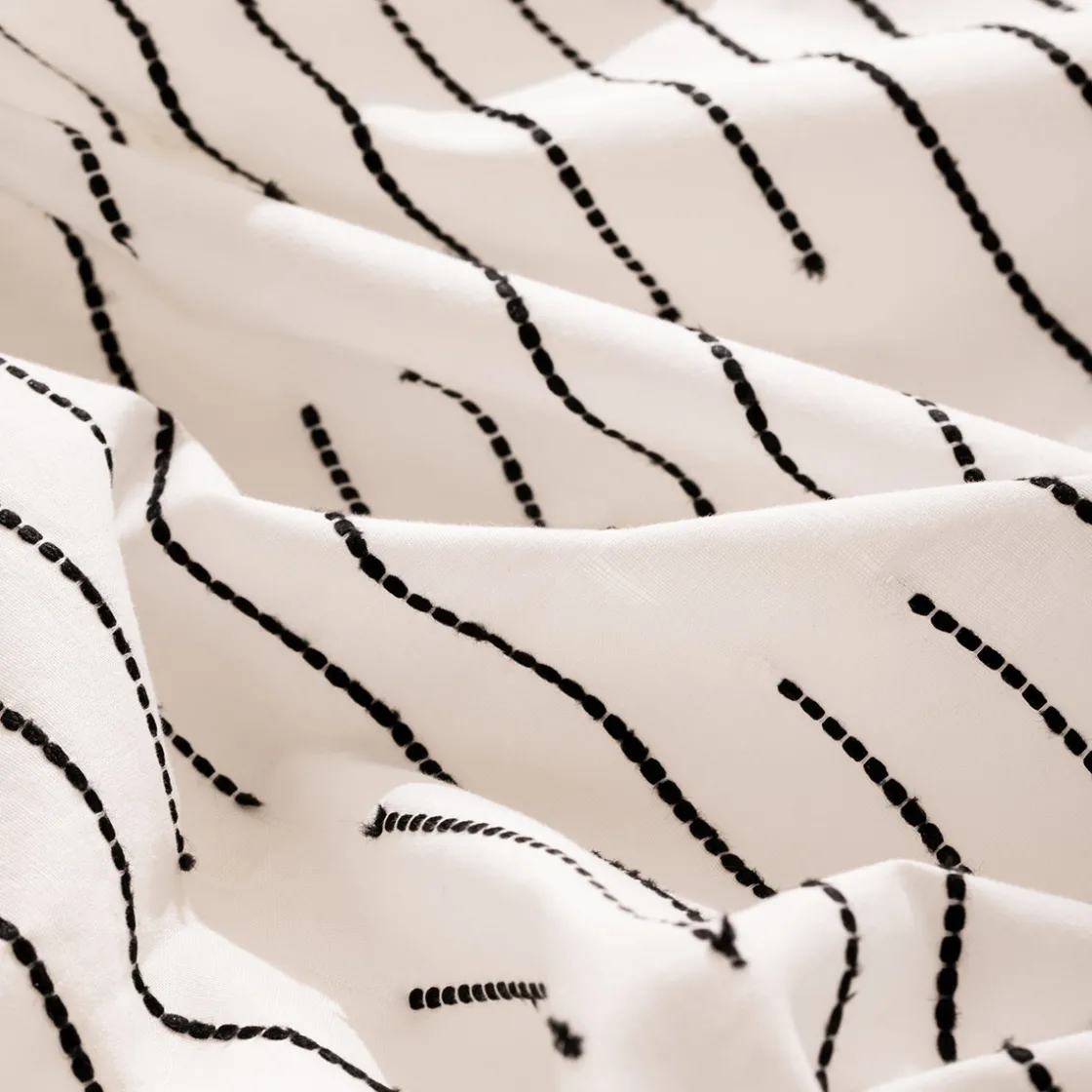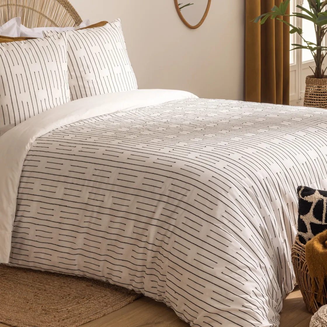 Conçue pour un grand lit deux personnes, la parure de lit « Kain » comprend une housse de couette et deux taies carrées. Elle est réalisée en 100% coton et se nettoiera très facilement en machine. De plus, elle possède un décor neutre pour se marier sans effort à votre chambre à coucher.