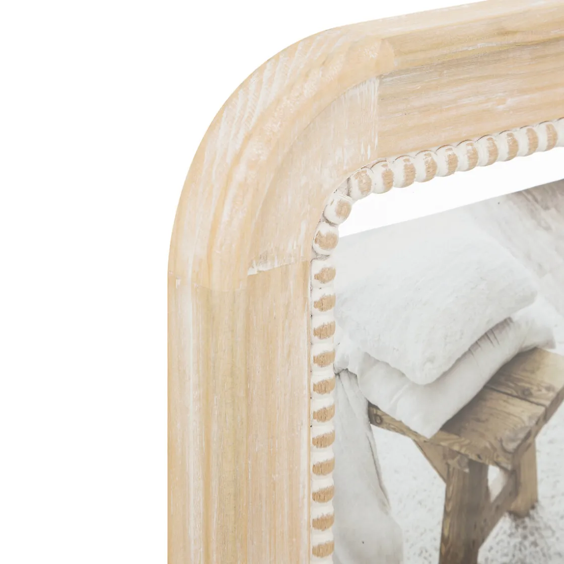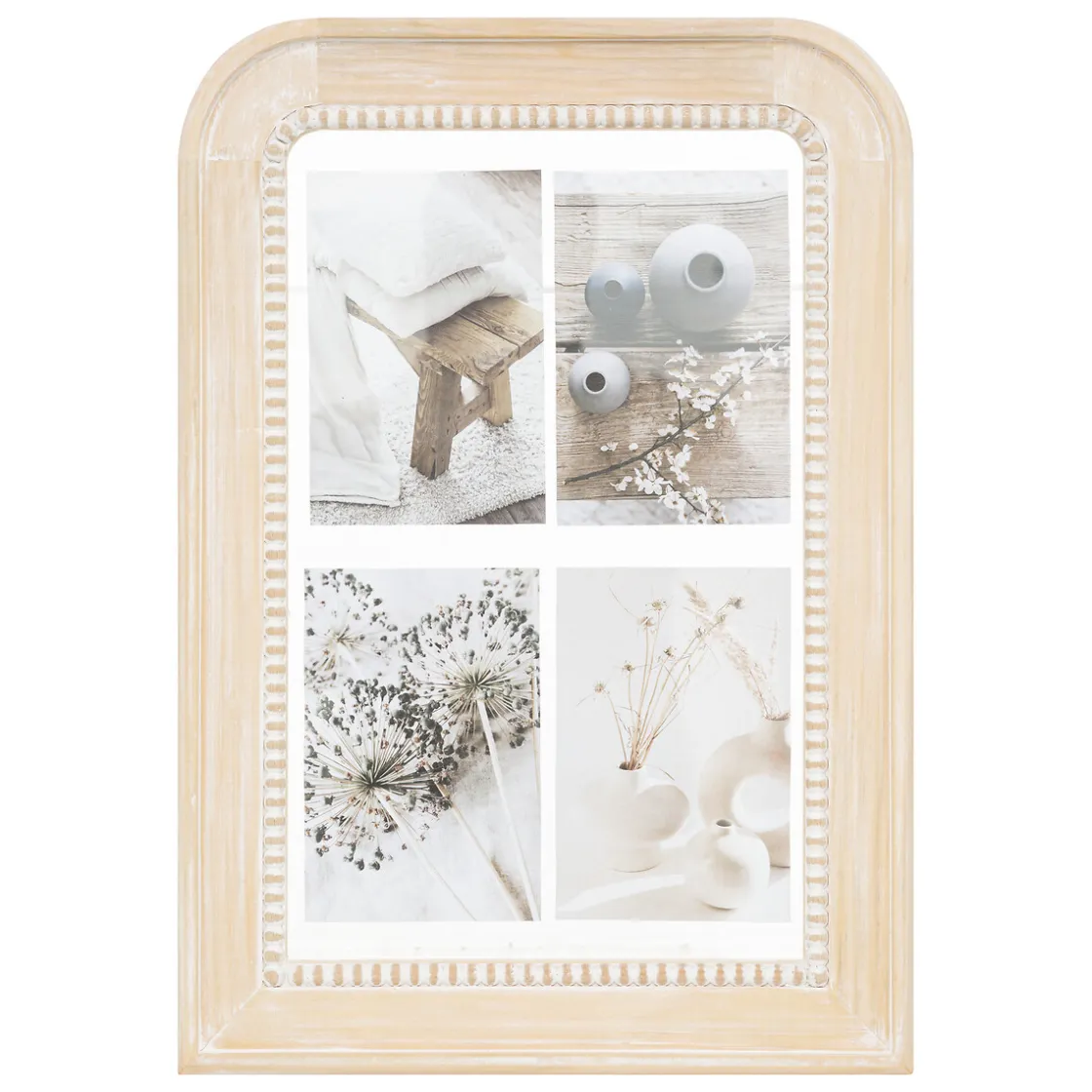 Installez votre pêle-mêle « Elena » au-dessus d’une commode en bois blanchi Atmosphera.