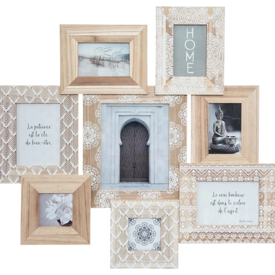 Le pêle-mêle « Emile » est composé de huit cadres en bois de paulownia, offrant des dimensions et des finitions différentes. Impossible de s’en lasser !