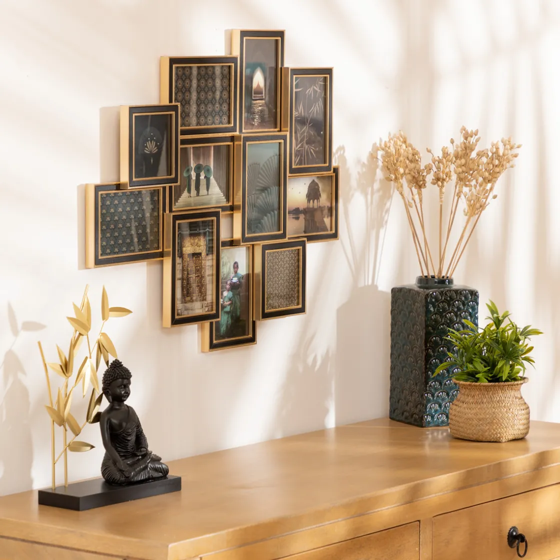 Installez votre pêle-mêle « Flavie » au-dessus d’un buffet en bois de manguier Atmosphera et évadez-vous dans votre salon!