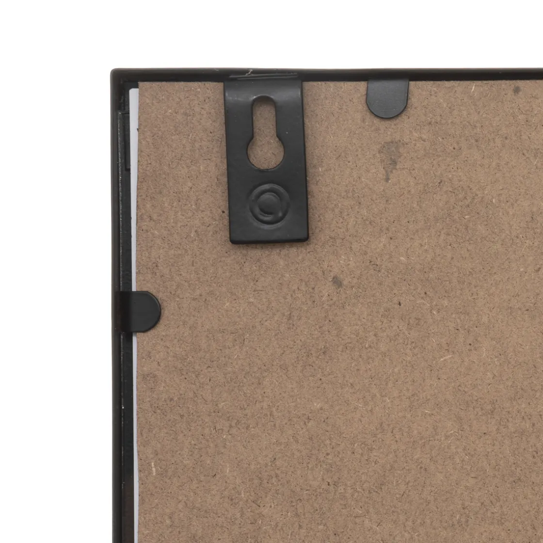 Le pêle-mêle « Lola » est réalisé dans un mélange de bois et de métal, et il obéit à une forme rectangulaire. 6 cadres vitrés vous permettront de mettre en valeur une sélection de photos ou de cartes au format portrait. Avec ses vis apparentes et son bois foncé, ce pêle-mêle déposera une note résolument authentique et rétro dans votre déco!