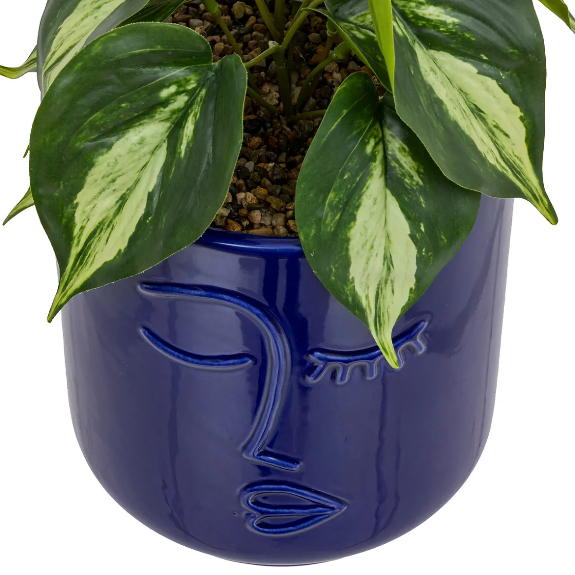 Facile à vivre car elle ne vous demandera aucun entretien, la plante artificielle « Soleya » obéit à des dimensions moyennes et se distingue par son pot en céramique émaillée, sculpté d’un visage stylisé. Le feuillage de la plante verte crée un contraste maîtrisé avec le pot et vous pourrez associer l’ensemble à du mobilier en bois clair.