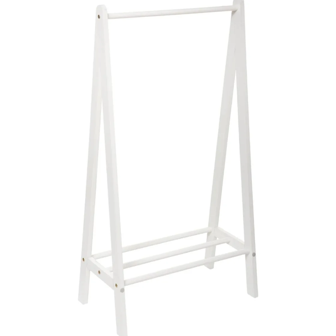Ce rangement est composé d’une tringle qui permet de suspendre les vêtements des enfants: robes, manteaux et chemises y trouveront une place de choix. Pour ranger les chaussures ou les piles de pantalons, préférez l’étagère située en bas du portant.
