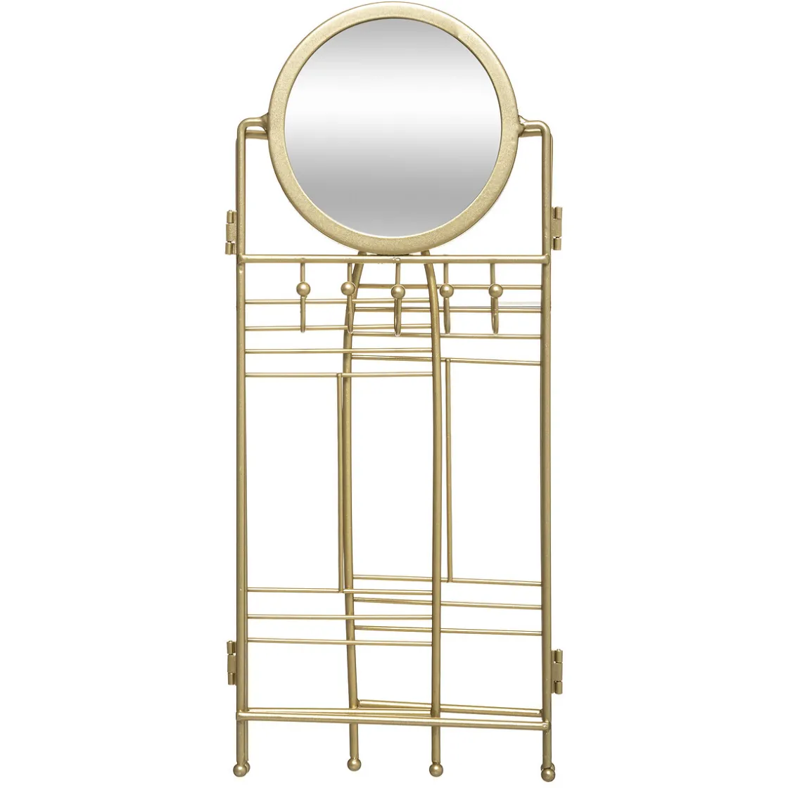 Pensé comme un mini paravent, ce porte-bijoux « Feel » en métal est composé de trois parties pivotantes qui vous permettront de l’ouvrir et de le fermer à l’envi. Les barres transversales accueilleront bracelets et boucles d’oreilles, 5 crochets étant prévus pour suspendre chaînes et colliers. Avec son miroir et sa hauteur de 33 cm, c’est un objet chic et accessible.