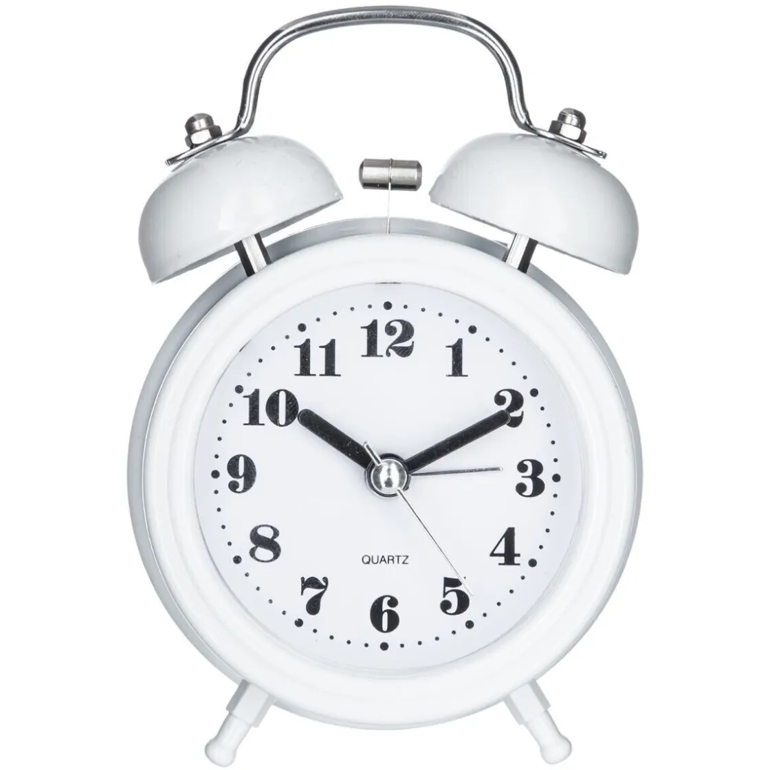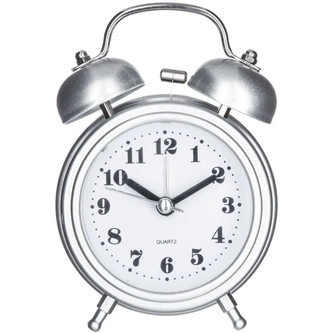 Ce réveil en métal à poser se caractérise par ses deux cloches, son petit marteau et sa poignée sur le dessus. Ses aiguilles vous permettent de régler la sonnerie pour vous réveiller le matin. Cette horloge trouvera sa place où vous le souhaitez puisqu’elle fonctionne à piles.