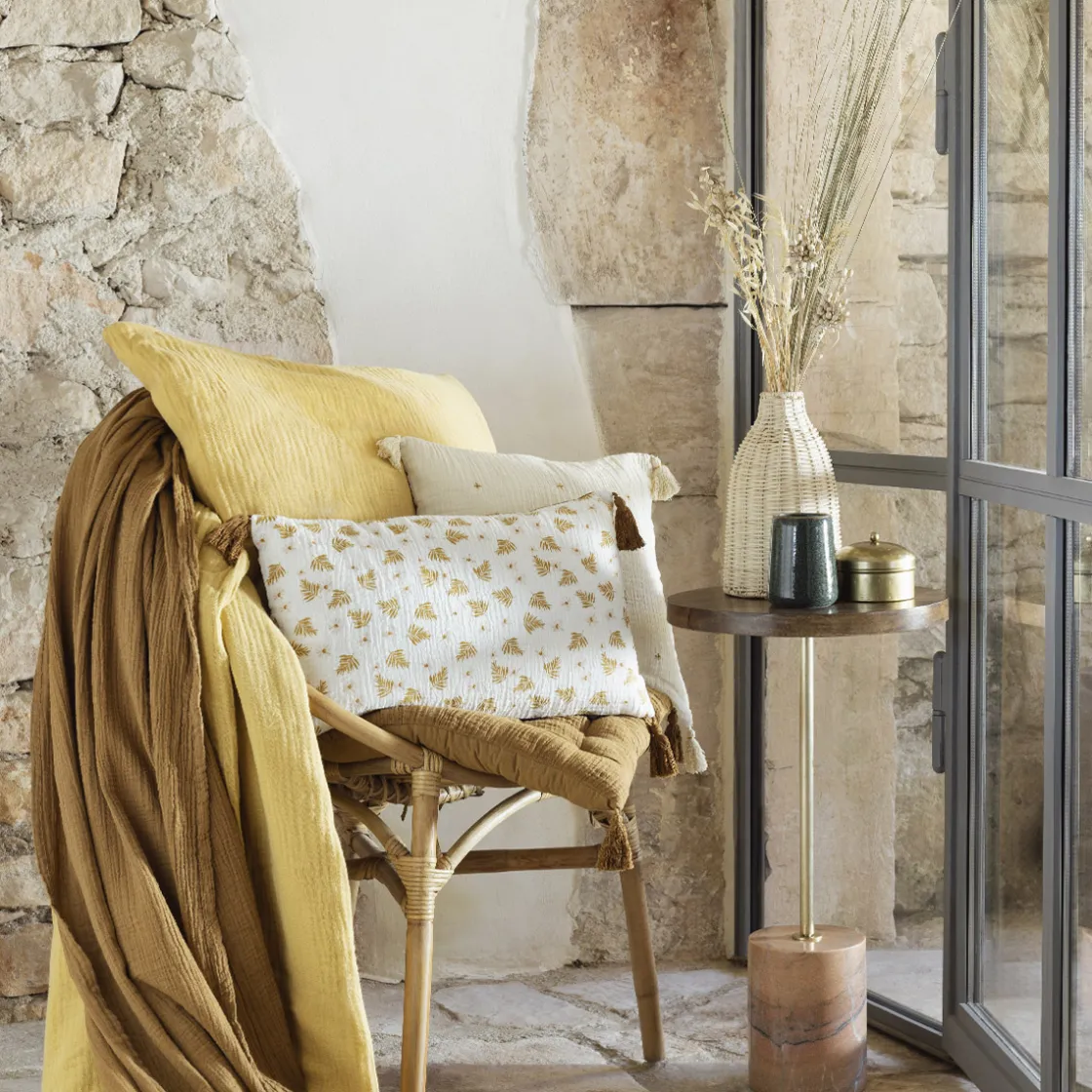 Complétez votre déco avec des embrasses et des coussins que vous assortirez à votre rideau.