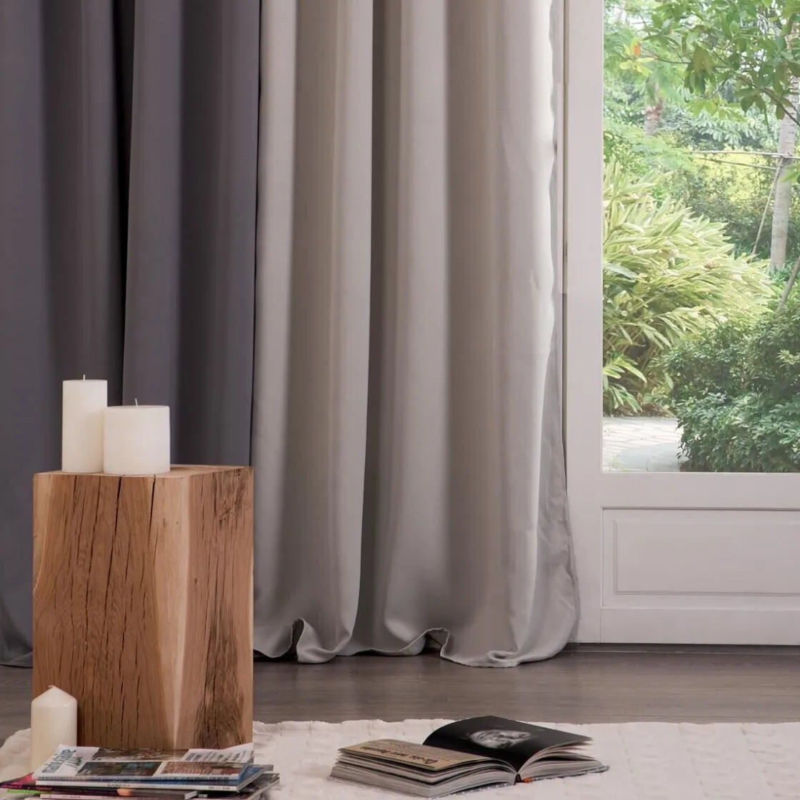 Associez votre rideau occultant à un voilage Atmosphera pour le mettre en valeur et varier le degré de luminosité.