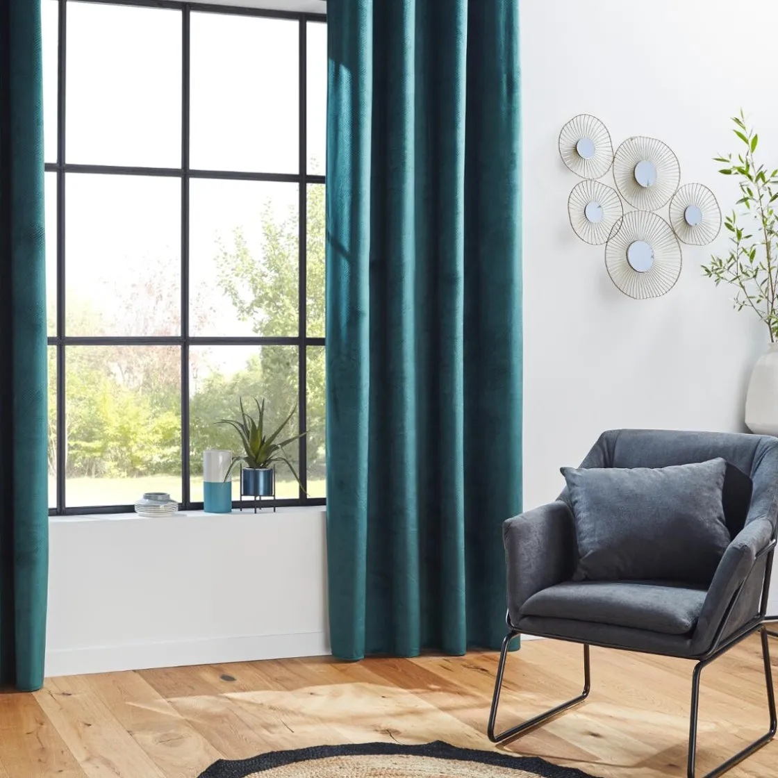 Ajoutez un fauteuil en velours assorti ou contrastant Atmosphera près du rideau occultant « Otto » pour une ambiance sophistiquée.