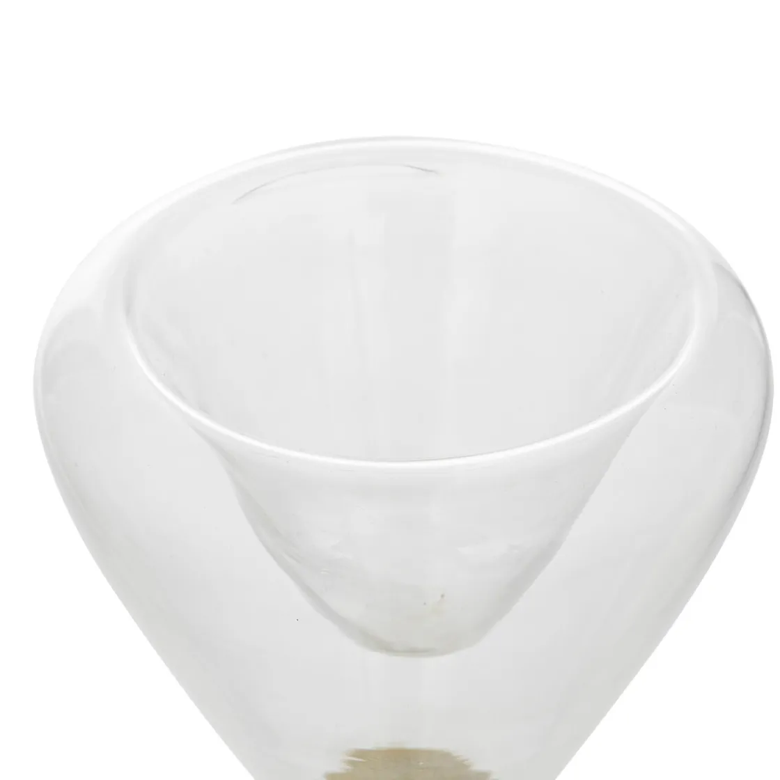 Réalisé en verre, ce sablier déco grand format joue la carte du raffinement! Vous pourrez le mettre en valeur dans une bibliothèque en bois foncé ou vous en servir en cuisine comme pour vos parties de jeux de société. Les détails en verre et la couleur du sable en font un objet design très élégant!