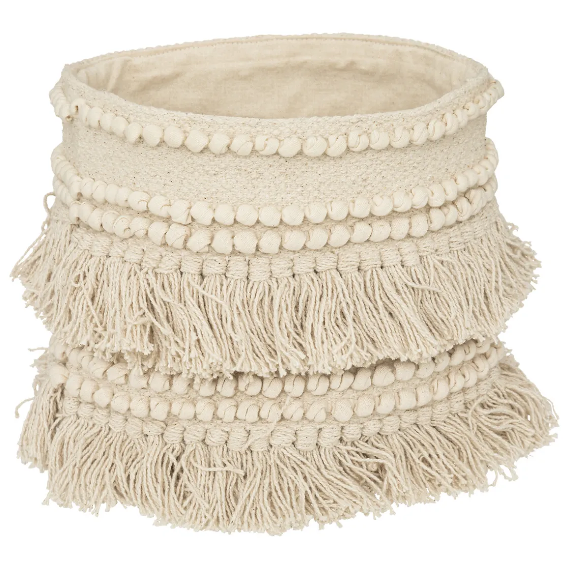 Le set « Seav » est composé de 2 paniers en coton recyclé de tailles complémentaires qui pourront servir de rangements d’appoint ou même de cache-pots. Frangés et souples, ils se marieront parfaitement avec des matières comme le bois ou la jute afin de former un ensemble plein de caractère dans votre intérieur.