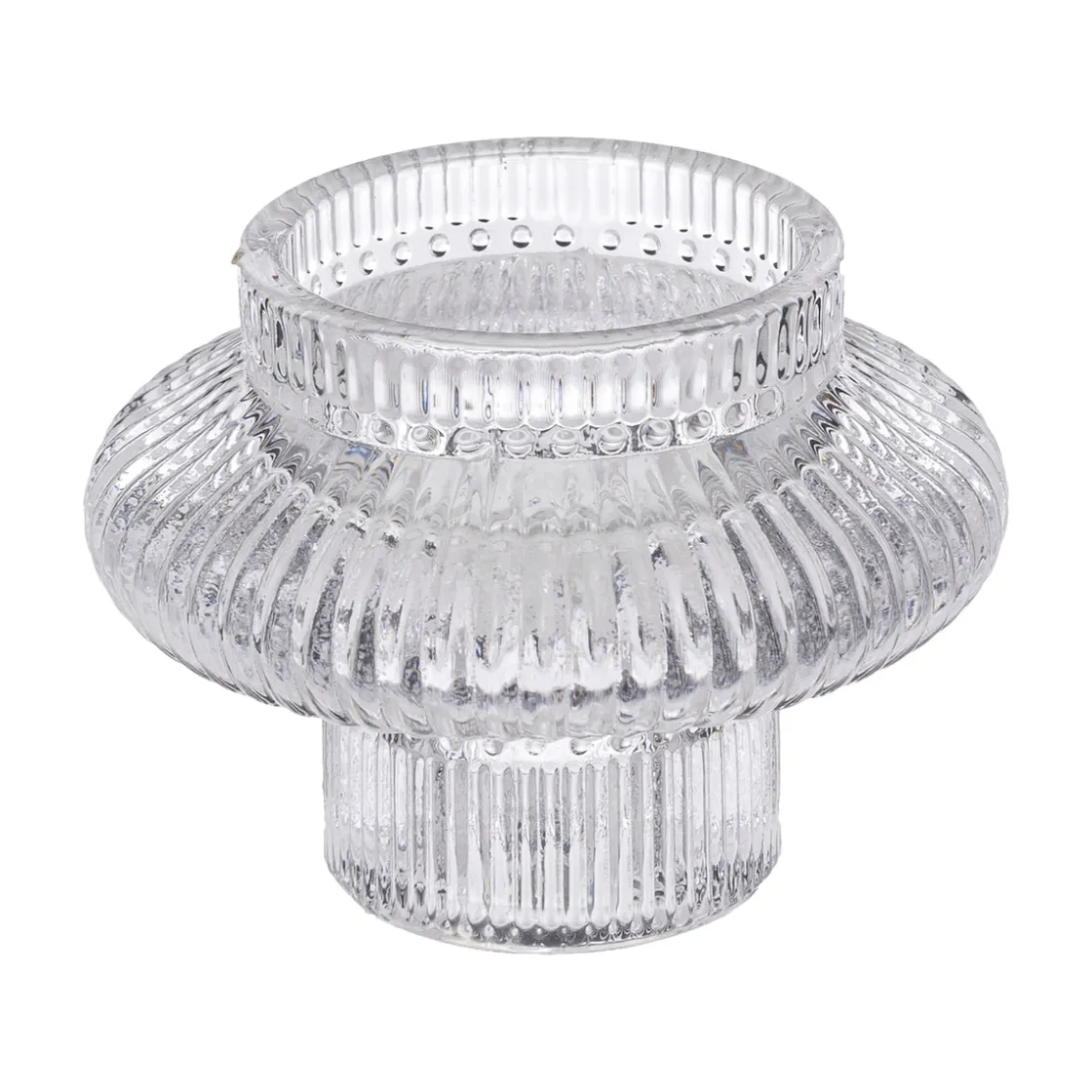 Complétez votre déco avec un vase en verre strié que vous garnirez de fleurs séchées afin de déposer une note bucolique dans votre intérieur.