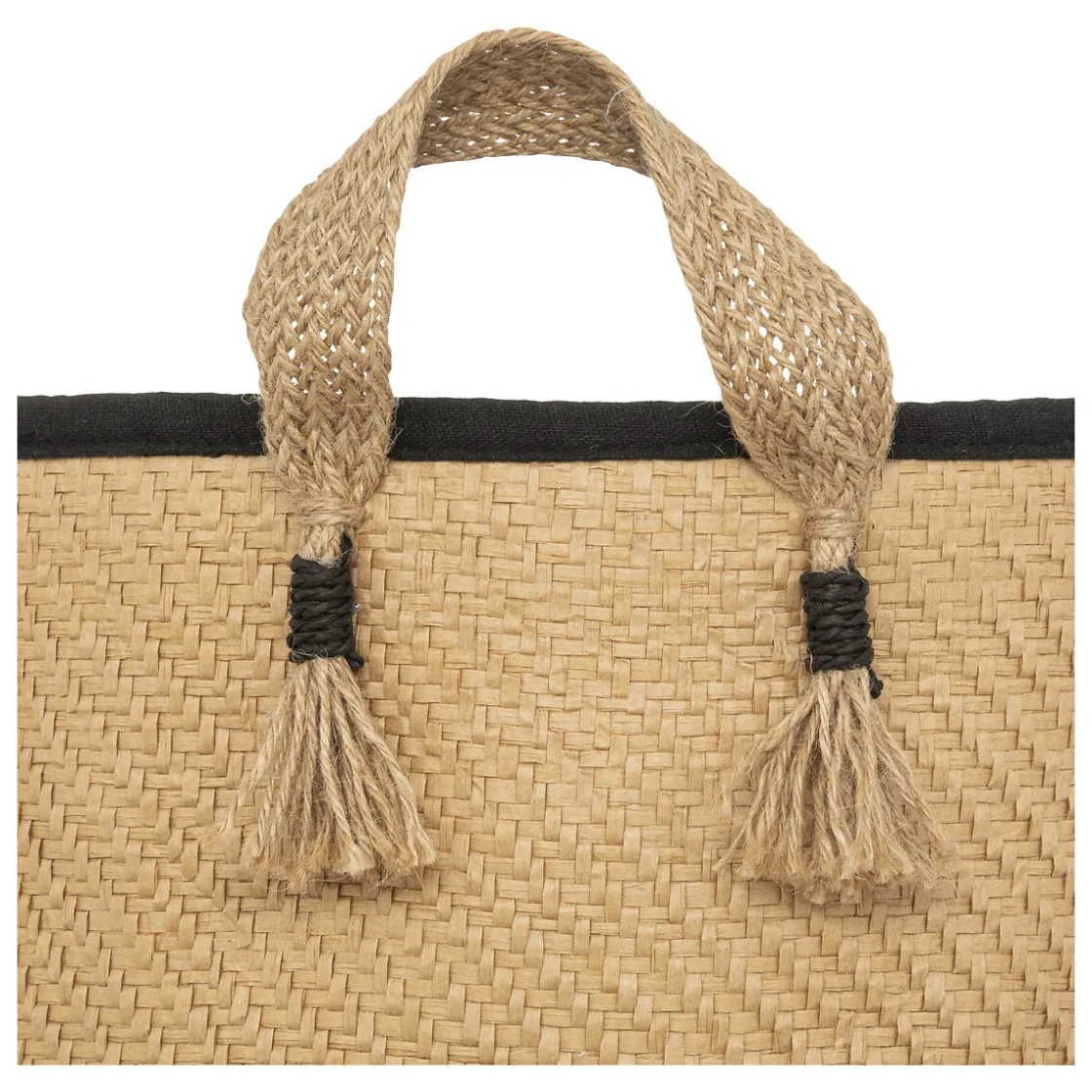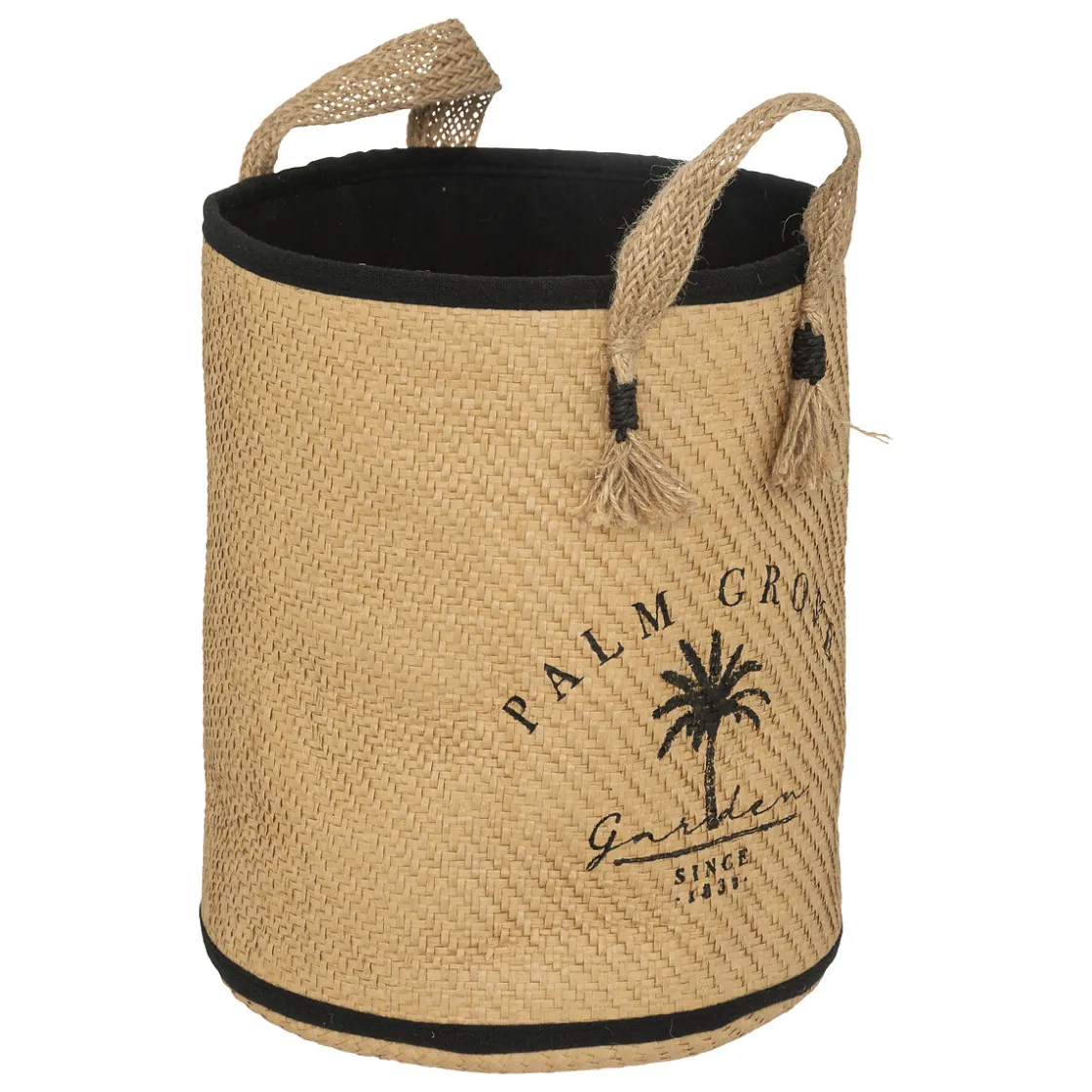 Bicolore, ces paniers sont réalisés en papier et jute végétale. Imprimés de motifs à l’esprit vintage, ils se marieront idéalement avec des matières comme le métal, le bois ou le cuir pour former un ensemble chaleureux.