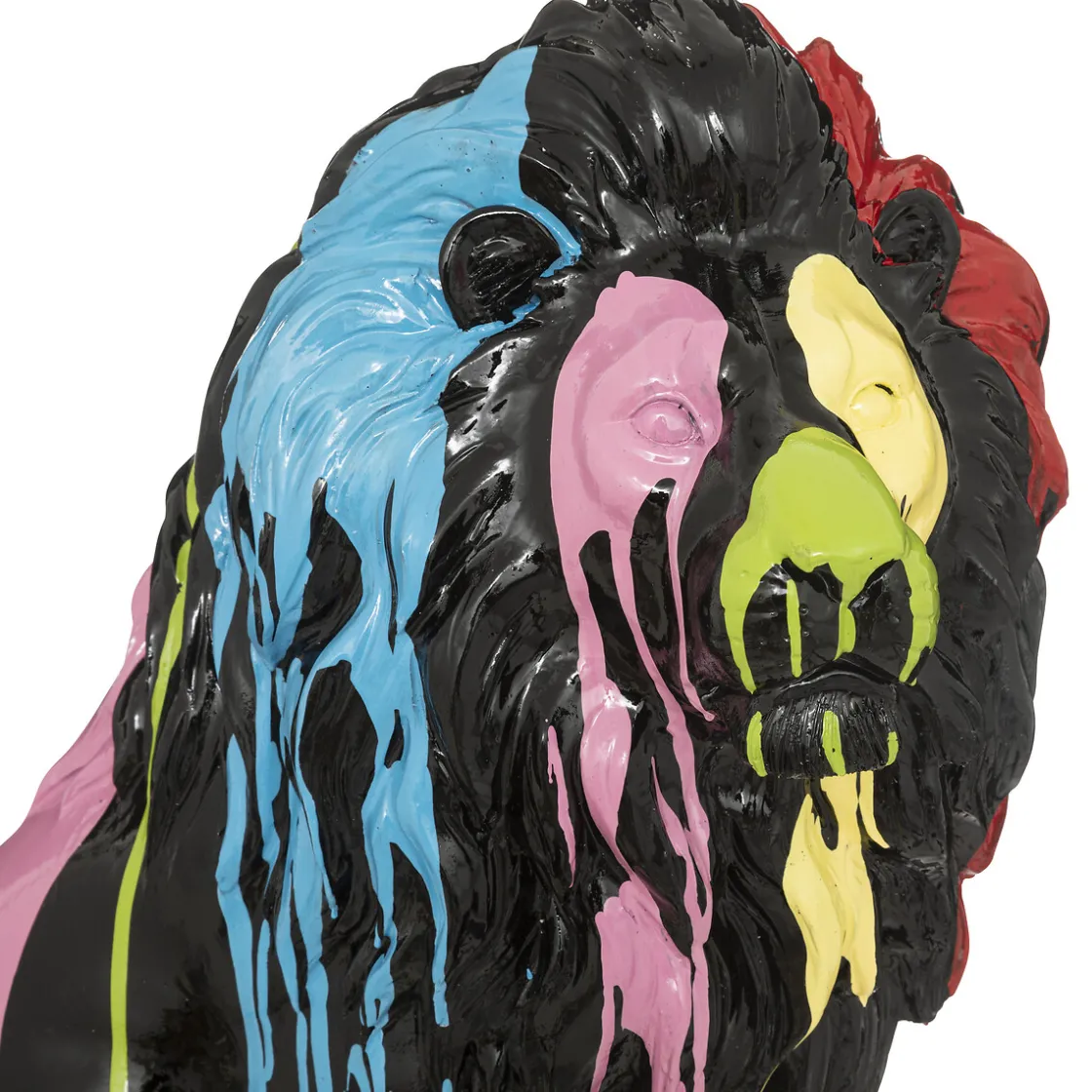 Cette sculpture de lion assis retiendra l’attention de vos convives. En effet, elle se distingue par sa nuance profonde recouverte de projections de peintures multicolores. La statuette « Lion » pourra trôner sur un buffet ou bien posée au sol contre un meuble.
