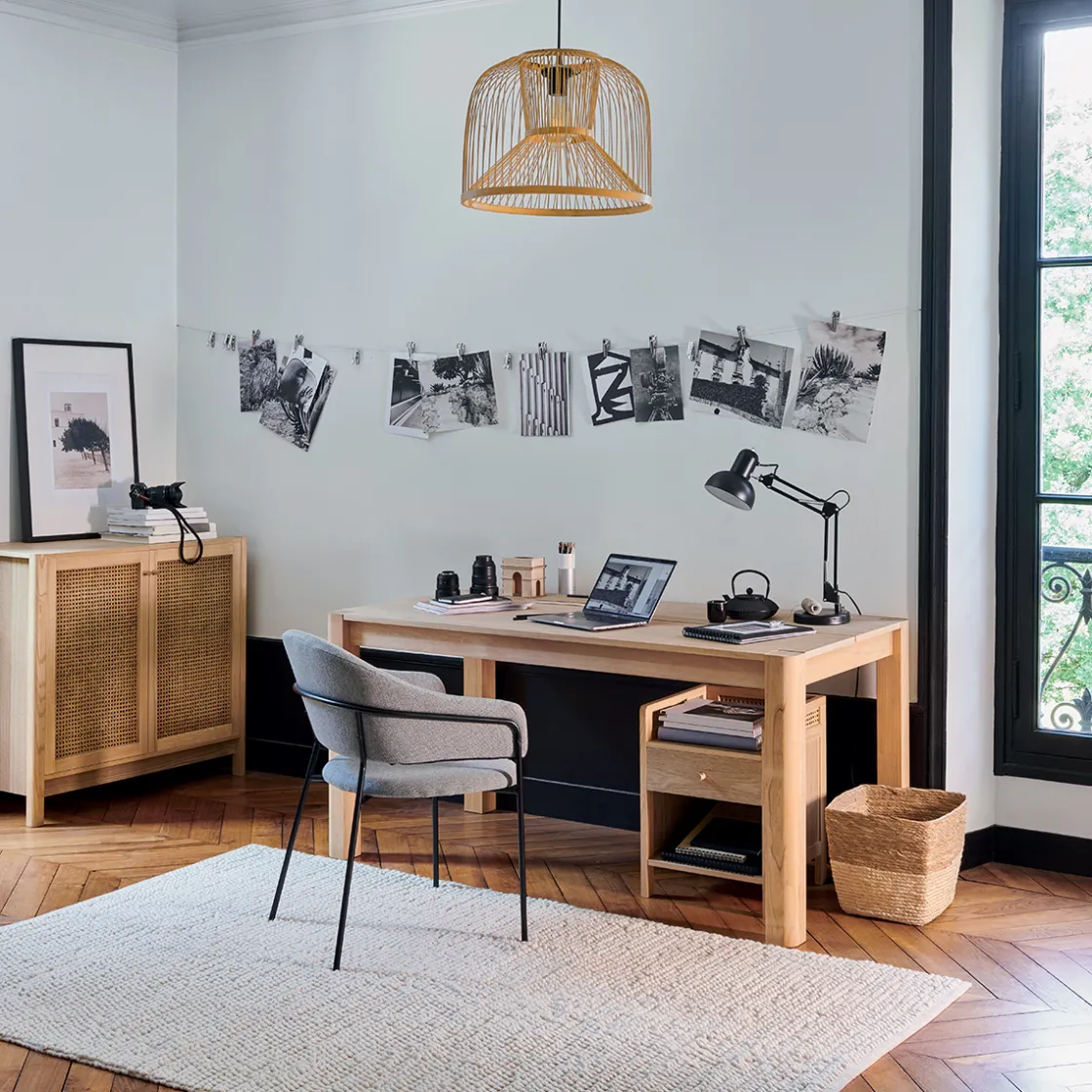 Légère et facile à installer, la suspension « Amy » séduit avec son bambou tressé. Une fois installée, elle diffusera une lumière douce tout en créant des formes graphiques au plafond.