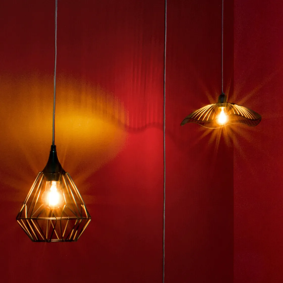Pour éclairer une grande pièce, réglez les câbles de fixation de vos luminaires à hauteurs différentes pour délimiter les espaces.