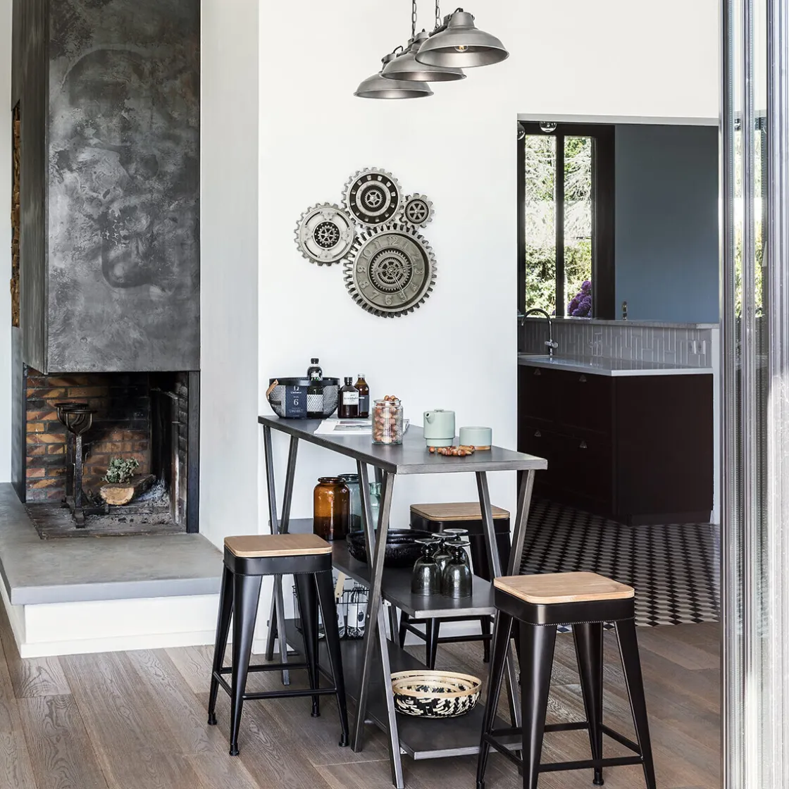 Associez le métal avec des matériaux qui le réchaufferont. Bois ou tissu, libérez toutes vos idées déco !
