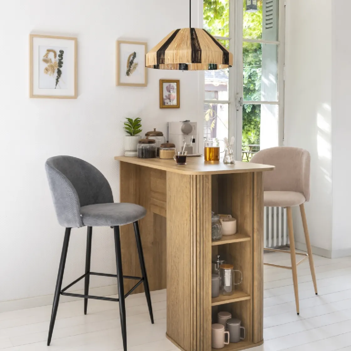 Dotée de 2 étagères de rangement dans le pied principal, la table à manger bar « Colva » est le meuble parfait pour un dîner, seul ou en tête à tête, en bar d’appoint dans une cuisine ou un petit salon.