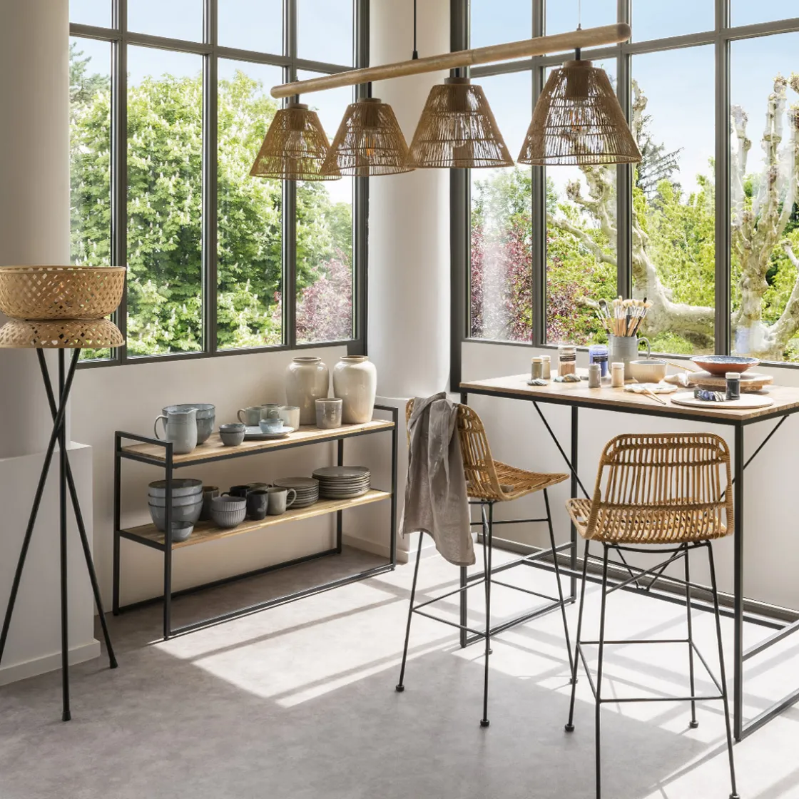 Installez-vous confortablement sur cette table en bois d’acacia et surmontée d’une structure en métal. Sa taille compacte la rend idéale pour recevoir dans un espace réduit grâce à sa capacité d’assise de quatre à six personnes.