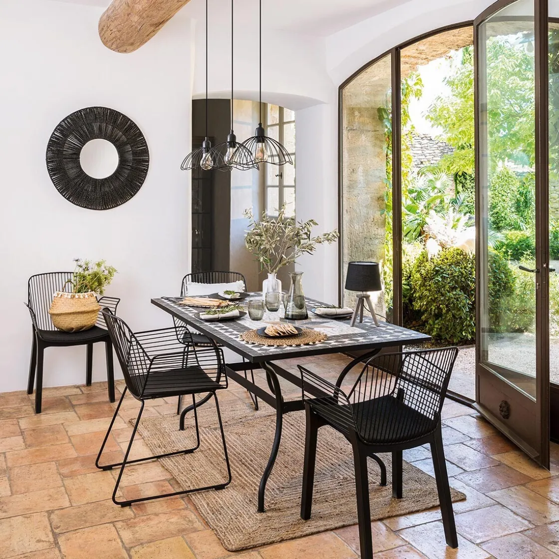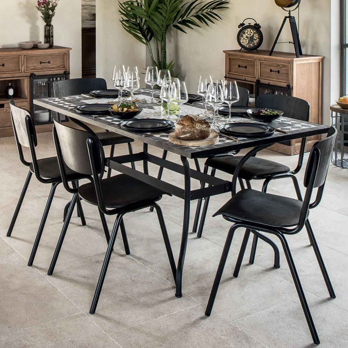 Entourez la table rectangle « Kipos » de six chaises en métal Atmosphera pour une salle à manger tendance à l’esprit brut.