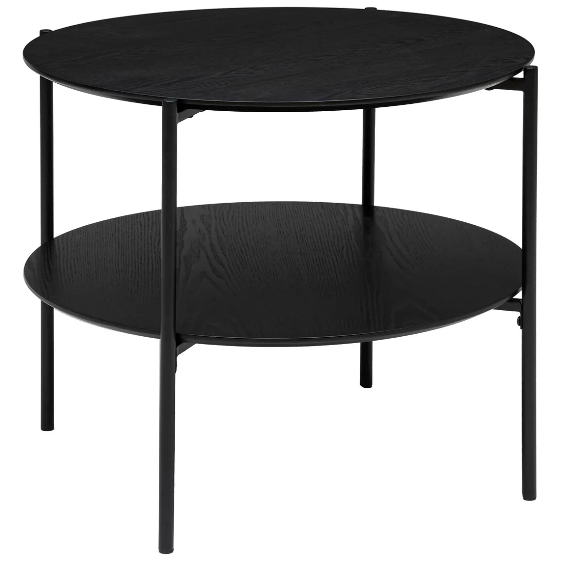 Réalisée dans un mélange de bois et de métal, cette table basse dispose de deux plateaux cylindriques qui vous permettront de ranger magazines et revues sur le niveau inférieur.