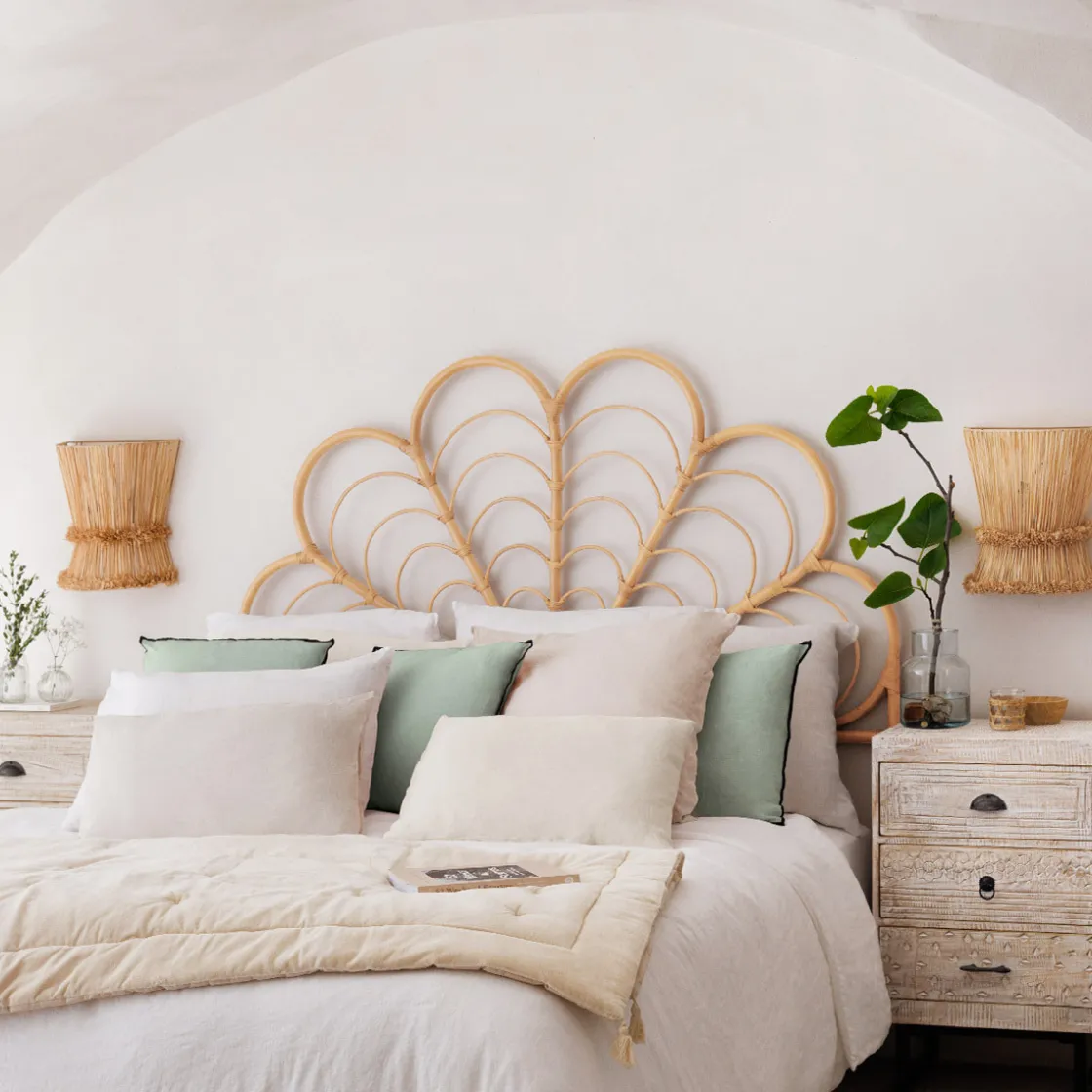 Complétez la décoration de votre cocon exotique par une tête de lit en bois sculpté ou en rotin ajouré Atmosphera.