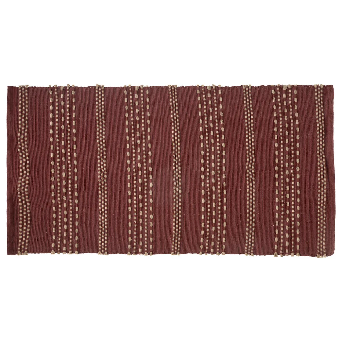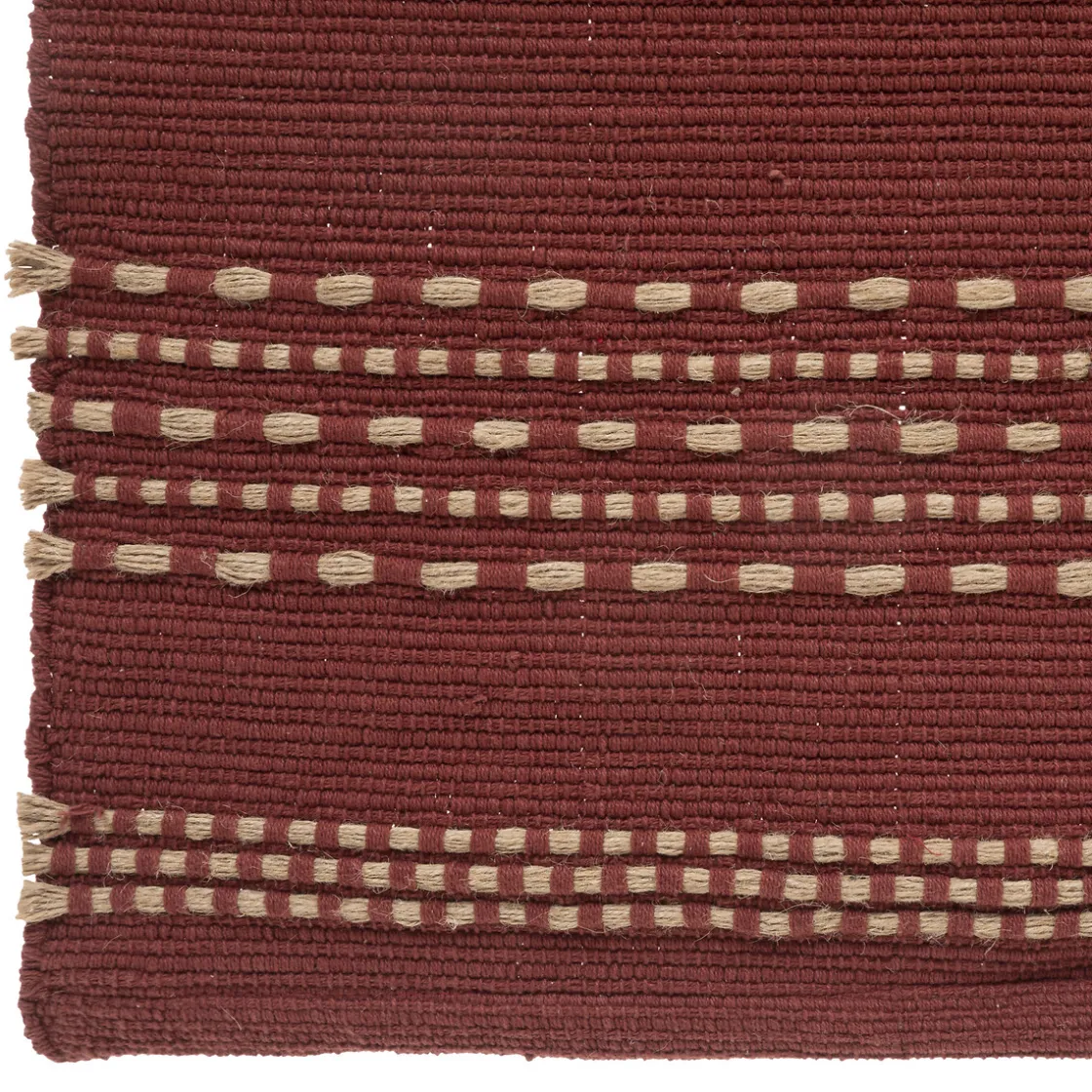 Le tapis « Bota » obéit à un format rectangulaire et des dimensions harmonieuses qui vous permettront de le placer dans une entrée comme dans un salon. Réalisé en coton et jute végétale, il est bordé de motifs graphiques et se mariera parfaitement avec des matières comme le bois, le rotin ou le métal.