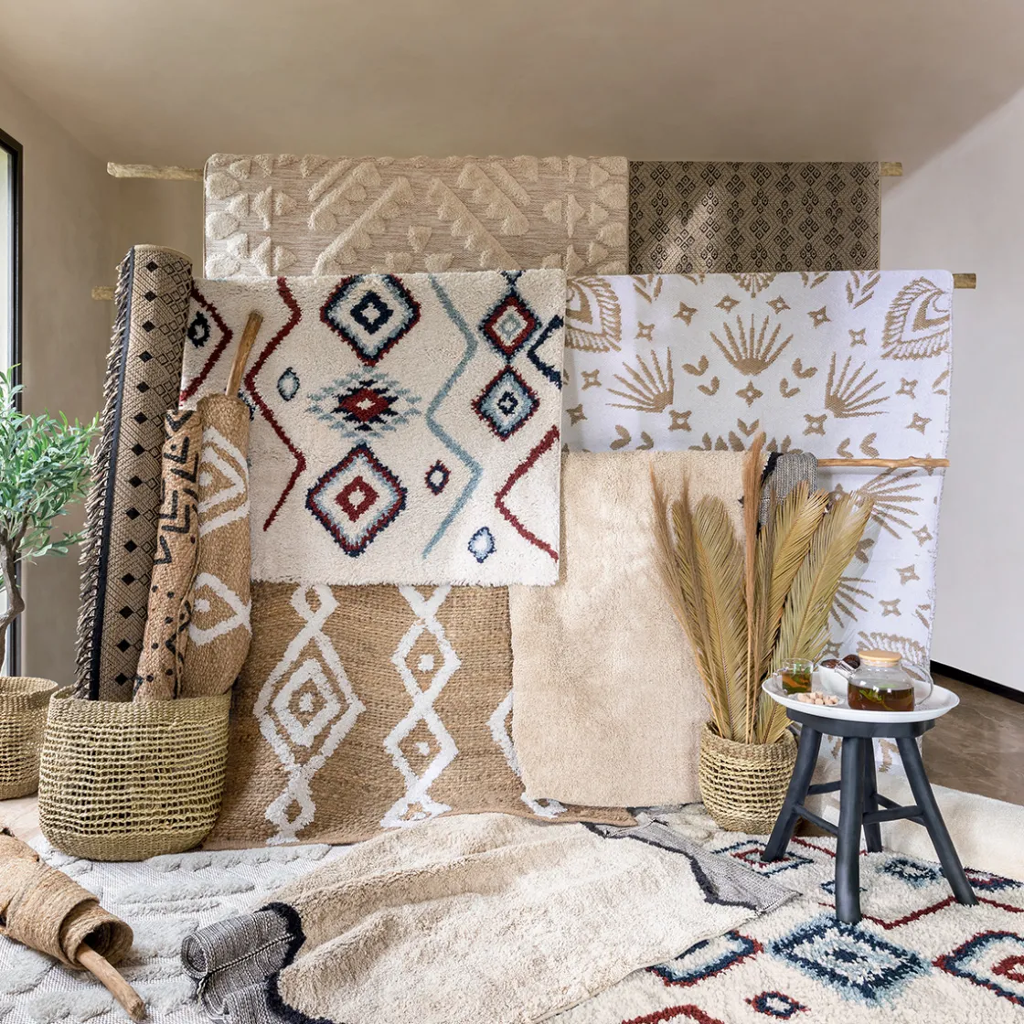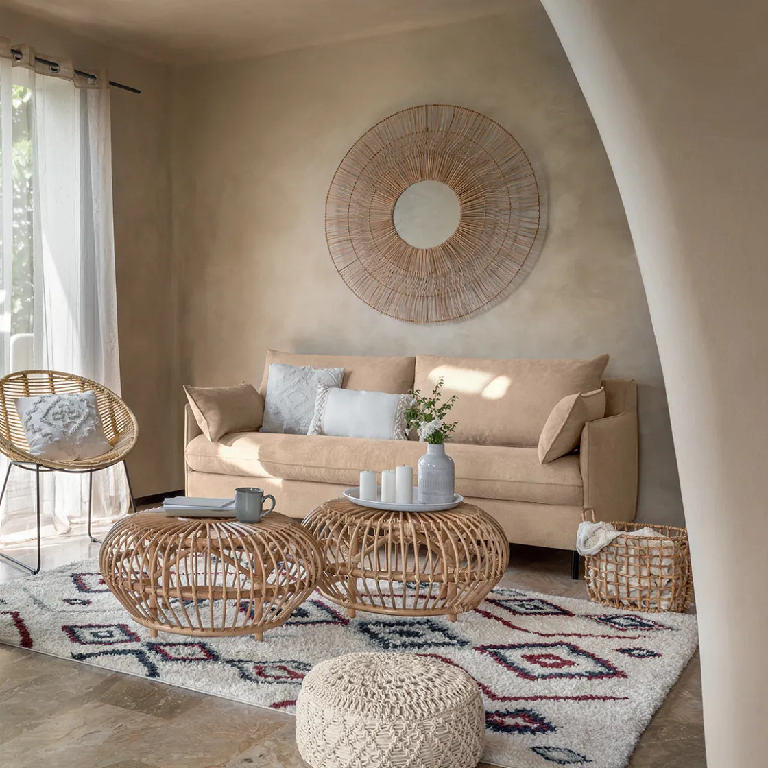 Pour un salon harmonieux, associez ce tapis à une table basse en bois Atmosphera afin d’obtenir une décoration de caractère.