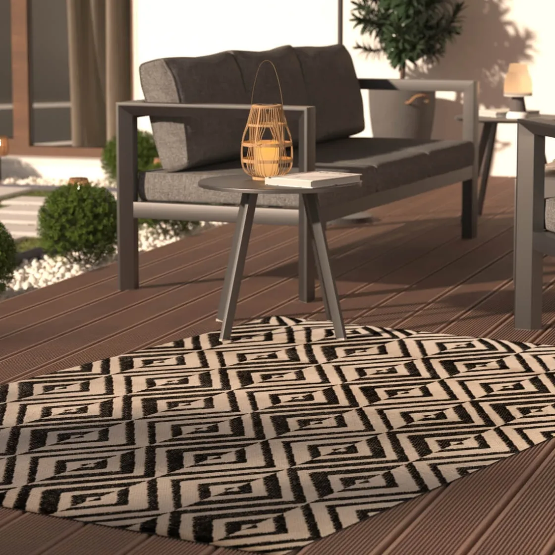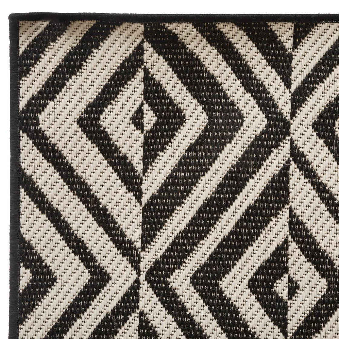 Très pratique, ce tapis rectangulaire est conçu pour un usage à l’extérieur ou à l’intérieur. Cet accessoire possède des motifs géométriques avec des couleurs contrastantes. Son allure artisanale conviendra parfaitement à une décoration ethnique chic.