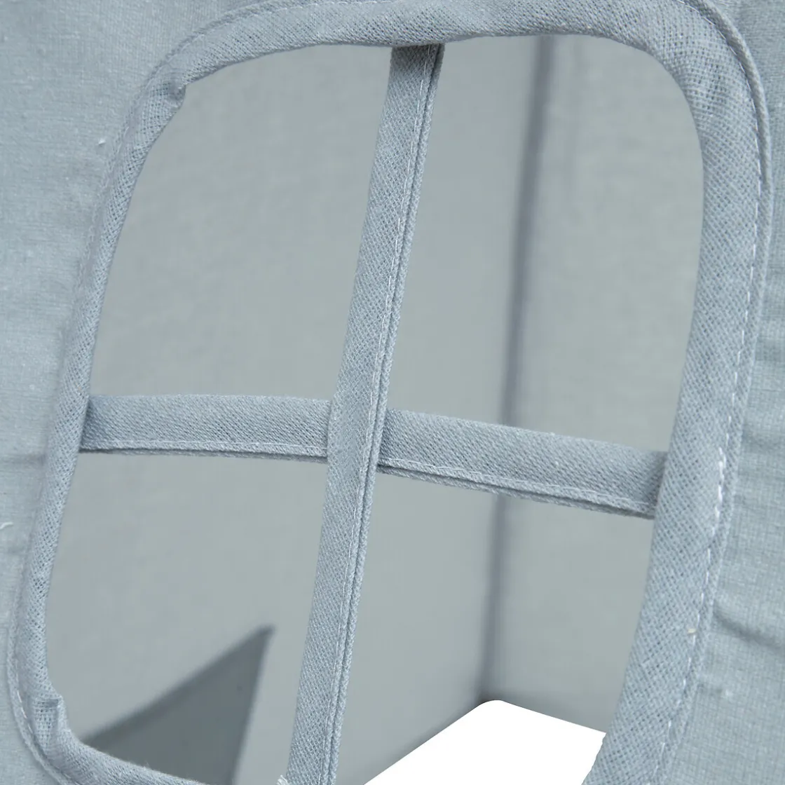 Avec sa structure en poteaux de peuplier et sa toile en tissu joliment bordée de pompons contrastés, ce tipi deviendra vite un élément phare d’une déco. Il est muni d’une petite fenêtre et d’une ouverture à l’avant qui peut se fermer grâce à des cordelettes: un véritable petit refuge propice à la rêverie, à la sieste et aux jeux!