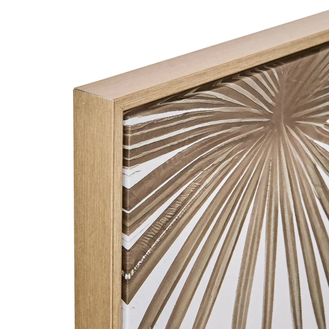 Les motifs végétaux de la toile sont représentés dans des couleurs neutres mais réhaussées d’une impression dorée en relief. Elle est montée dans un cadre en bois certifié FSC®. La toile en relief Shirley ira parfaitement au-dessus d’un meuble agrémenté de statuettes dorées Atmosphera.