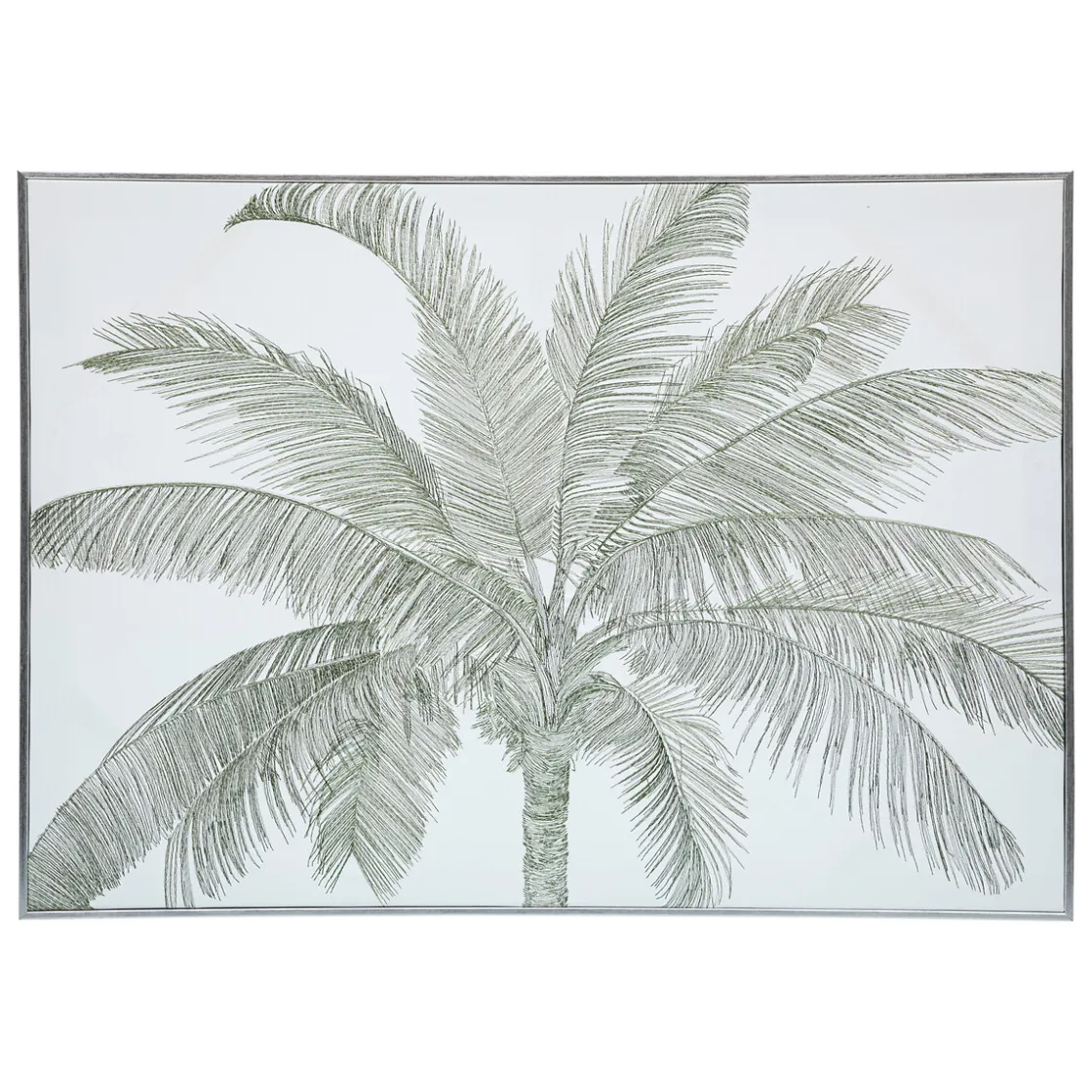Chic et accessible, la toile brodée « Tayma » est montée sur un panneau en bois rectangulaire et dispose de crochets pour être fixée facilement à un mur. Tendue de tissu, elle est brodée d’un grand palmier qui ne passera pas inaperçu dans votre univers! Elle fera souffler un esprit art déco très élégant.