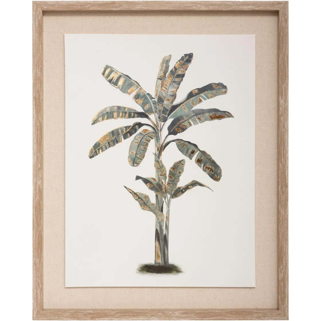 La toile est montée sur un cadre en fibre de bois à l’aspect patiné qui apportera instantanément un cachet authentique à votre déco. Elle représente des arbres tropicaux sublimés par de délicates touches de dorure. Cette toile vous offrira plusieurs possibilités d’agencement.