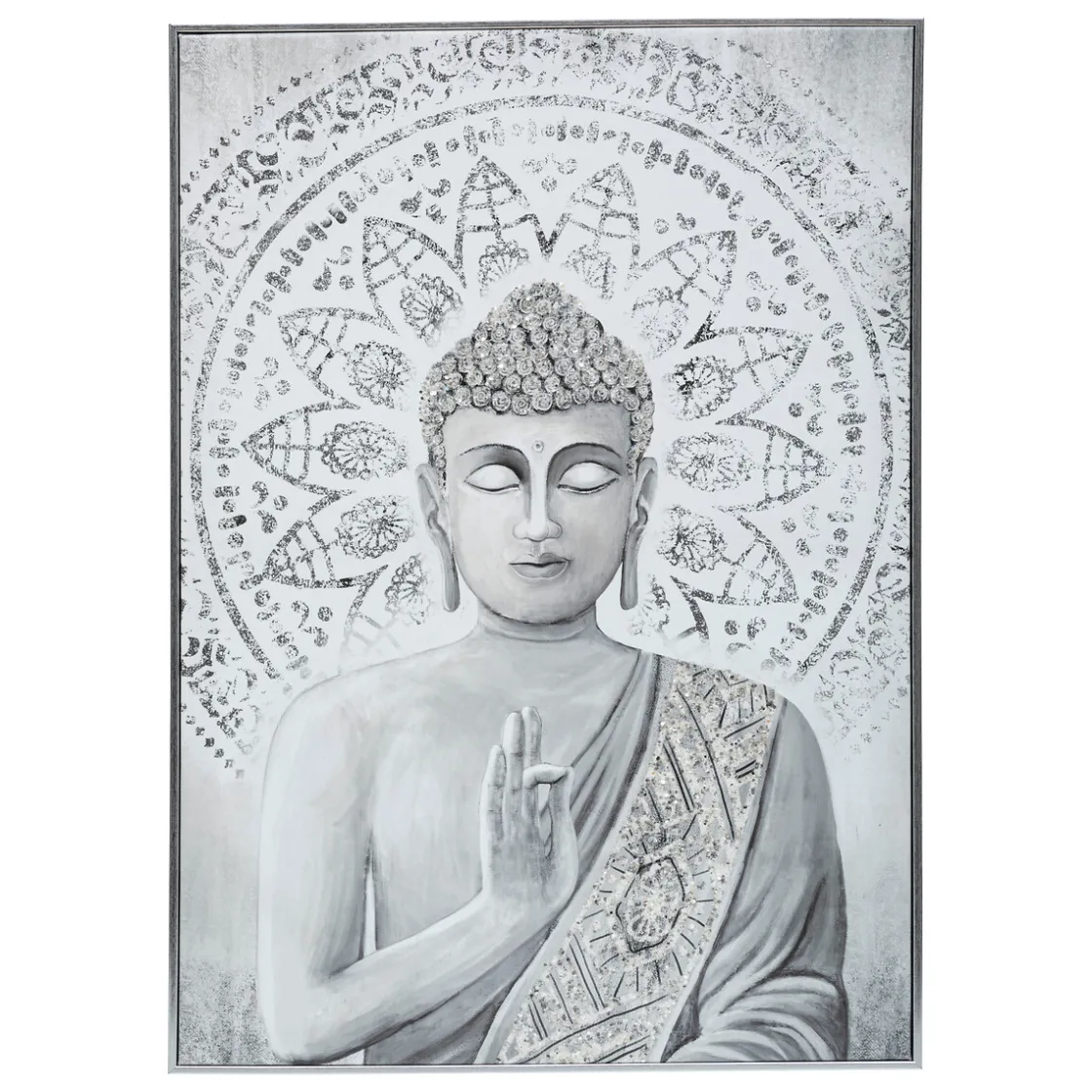 Installez votre toile imprimée « Bouddha » au-dessus d’un buffet en bois de manguier Atmospheraet évadez-vous dans votre salon!