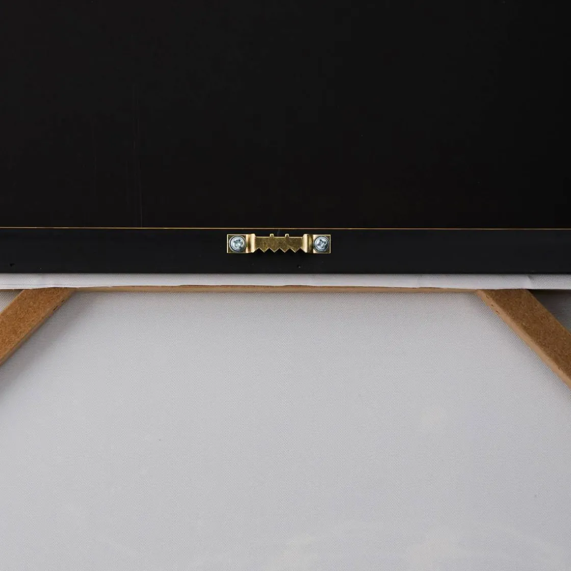 Cette toile verticale représente un animal majestueux sur fond noir accompagné d’une impression de doré métallisé. Elle est mise en valeur par un cadre en bois certifié FSC®. La toile imprimée encadrée Lupita trouvera naturellement sa place au-dessus d’une console en métal Atmosphera.