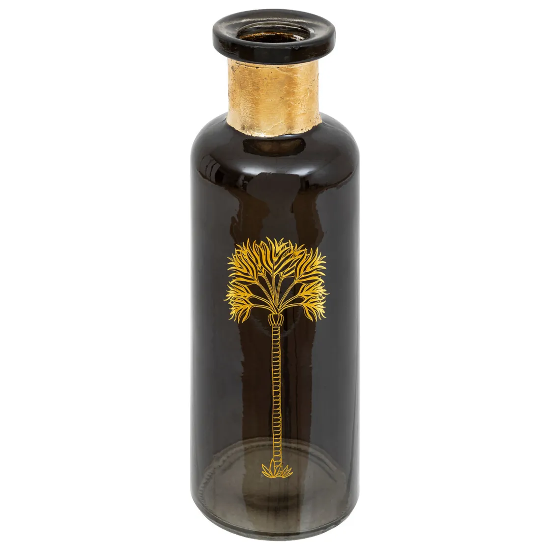 Réalisé en verre transparent, le vase bouteille « Tropical boudoir » obéit à des dimensions harmonieuses et vous permettra de mettre quelques fleurs fraiches ou tiges séchées en valeur. Rehaussé de motifs dorés très contemporains, il se suffira en tant qu’objet déco à part entière dans un univers à l’esprit décorateur!